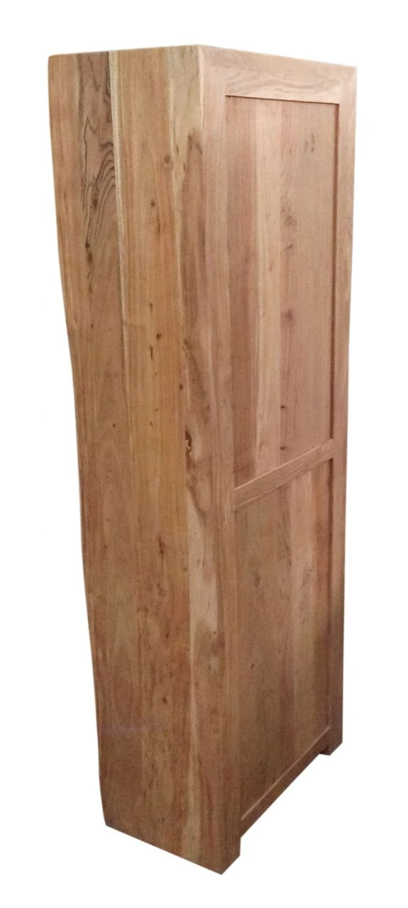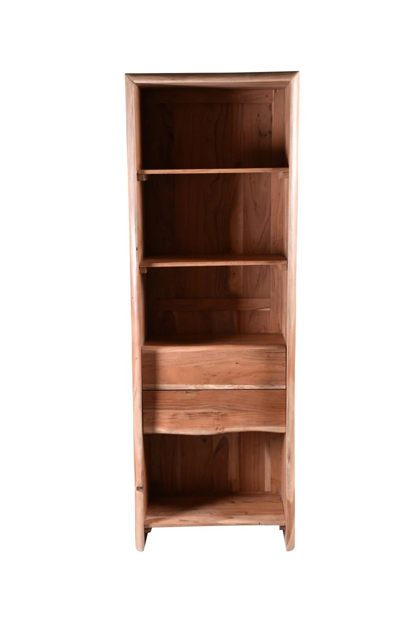 Massive Akazie mit dem gewissen Etwas, natürlich gewachsene Formen des Holzes werden zum stilbildenden Element des Möbels – ja, hier wird die Natur nicht zurechtgestutzt. Deshalb liegt auch viel Kunst in der Fertigung, denn man muss jede Planke sorgfältig lesen und die richtige Anordnung zueinander finden, damit so ein stimmiges Bild wie hier gefunden wird. Keines dieser fertigen Produkte gleicht letztendlich dem anderen. Jedes dieser faszinierenden Möbelstücke gibt es so nur einmal. Wer das Echte liebt und das Besondere sucht, der ist hier richtig. 2 Schubladen, so perfekt verarbeitet, dass sie wie eine aussehen, bieten allerhand Platz für dies und das. Außerdem gibt es 4 offene Fächer für Bücher oder Deko.