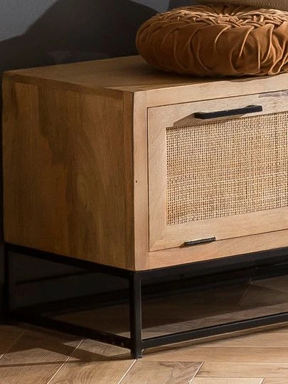 - Material: Mango lackiert mit Rattan-Front, Gestell Metall