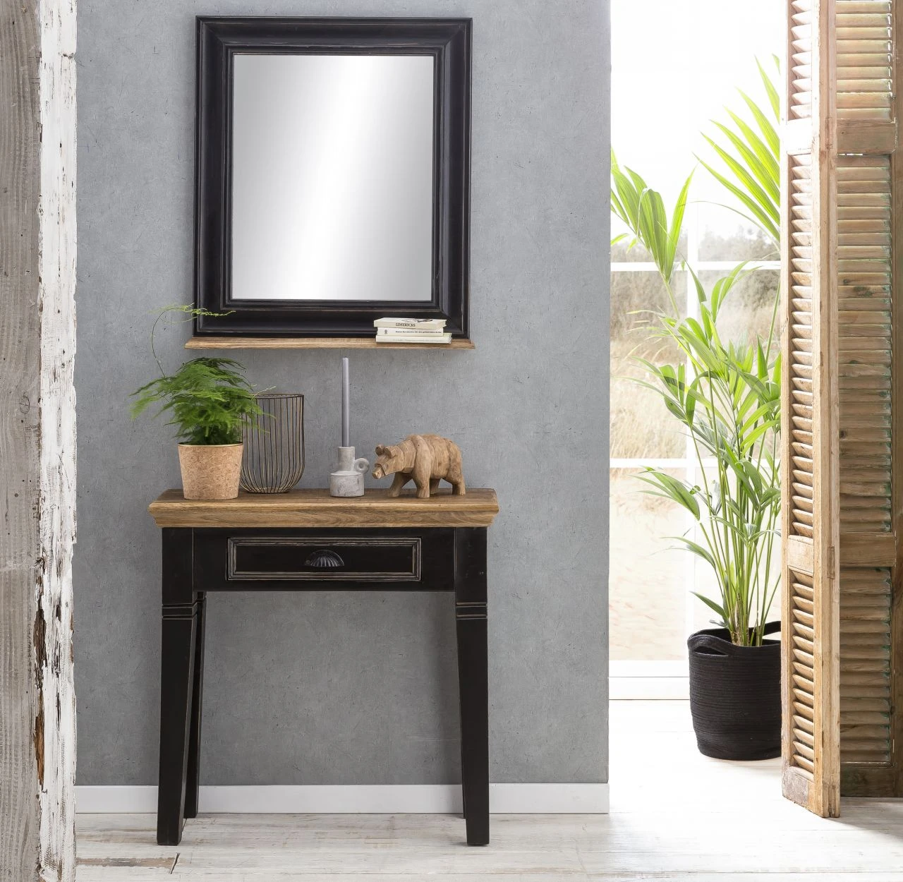 Holen Sie sich mit diesem Telefontisch einen Hauch Urlaub direkt in Ihr Zuhause. Der kleine Konsolentisch mit einem Schubkasten bietet in Garderoben einen zusätzlichen Stauraum für Schlüssel und viele kleine private Dinge des Lebens. Ausgestattet mit einem Muschelgriff lässt sich die Schublade ganz einfach aufziehen. Sein antikes Flair lässt es zu, dass er sich problemlos in modernes Mobiliar integrieren lässt. Als zusätzlicher Dielentisch oder im Flur als zusätzlicher Flurtisch, im Esszimmer oder Wohnbereich als kleiner Wandtisch. Wenn für eine Kommode kein Platz ist, passt dieser Beistelltisch ganz sicher. Die honigfarbene Deckplatte eignet sich für diverse Dekorationsmöglichkeiten und lässt die Schönheit der antik anmutend wirkenden Konsole erst richtig zur Geltung kommen.