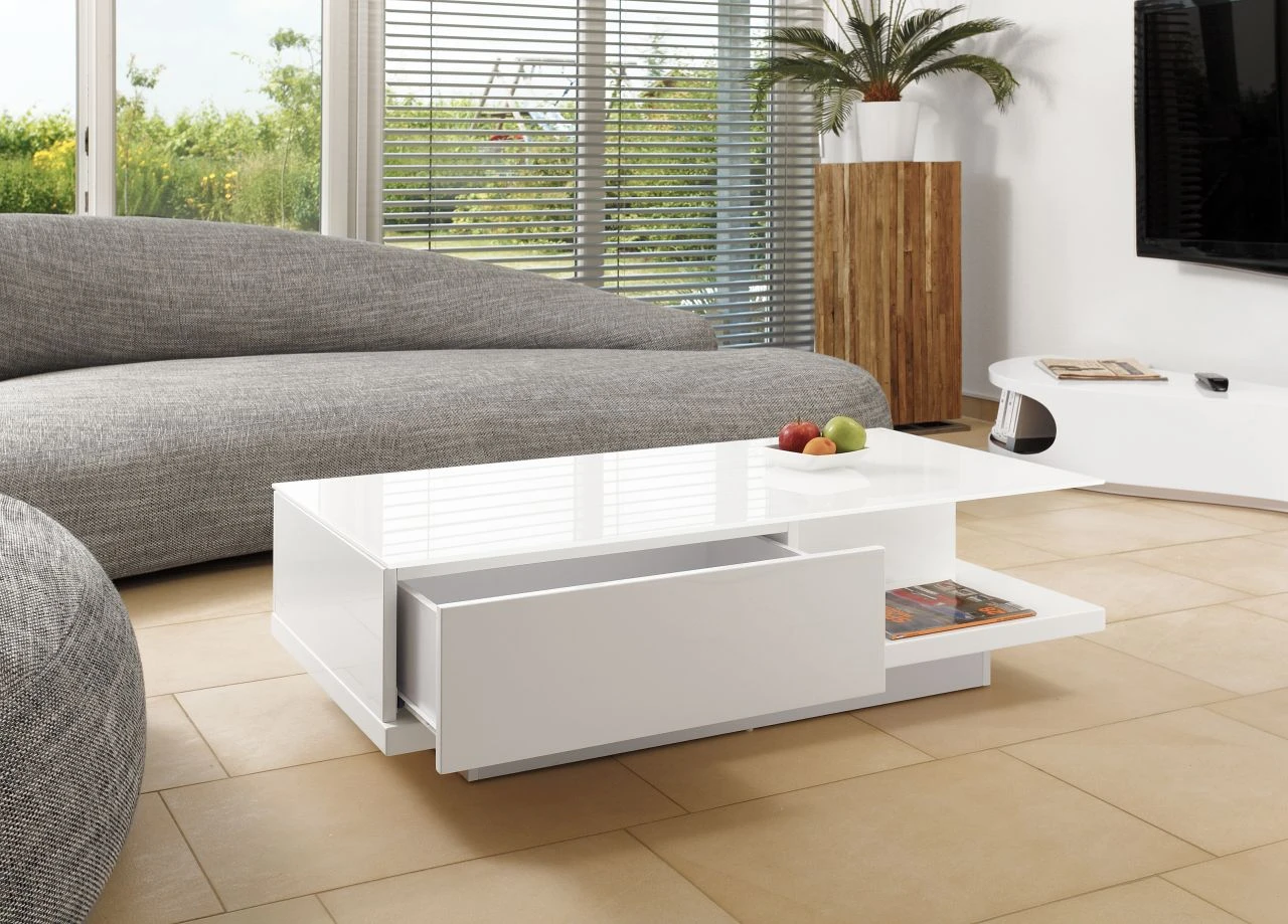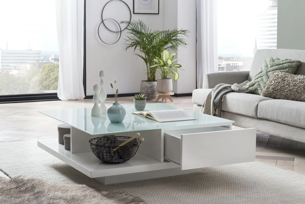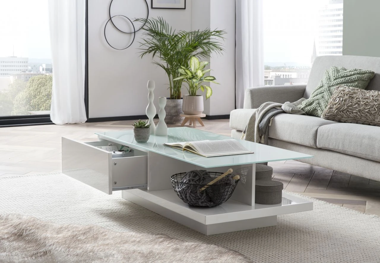 Couchtisch Hochglanz mit Glasplatte