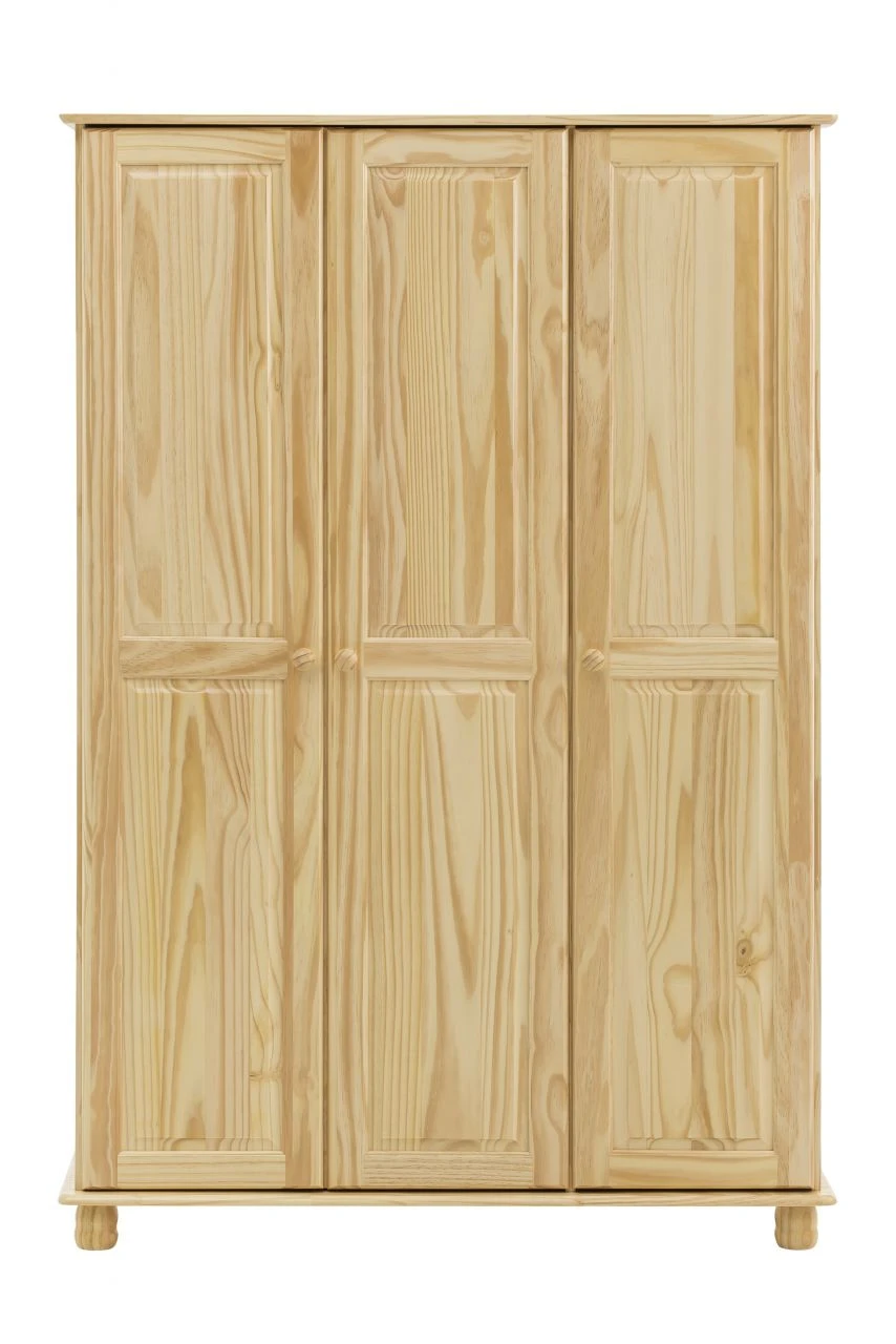 Dieser Kleiderschrank im zeitlosen Design sorgt stilvoll für Ordnung in Ihrem Wohnraum. Er wurde aus massivem Kiefernholz gefertigt und bietet hinter drei Türen, mit einer Kleiderstange und Einlegeböden genügend Platz, um viele Kleidungsstücke übersichtlich zu verstauen. Der Kleiderschrank passt perfekt ins Schlaf- oder Kinderzimmer, macht sich aber auch gut im Flur oder Eingangsbereich. Die massive Kiefer bringt einen Hauch von Landleben ins Heim. Die Oberfläche wurde lackiert, so dass das Möbel unempfindlich ist.