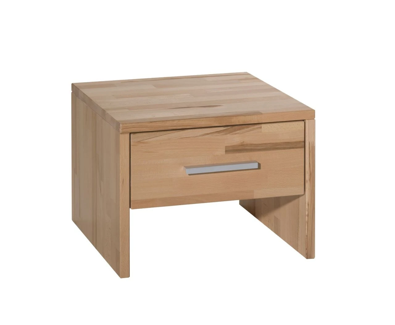 - Formschöner, schlichter Nachttisch mit Schublade aus massiver, natur geölter Kernbuche