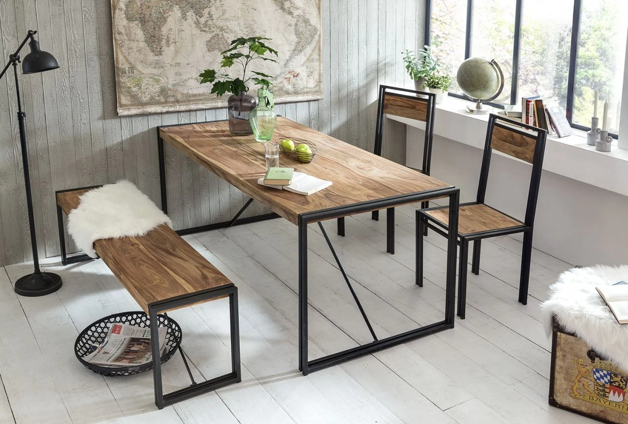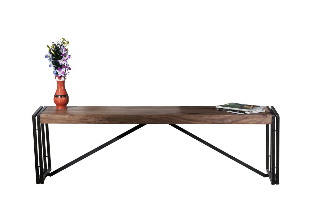 Diese Sitzbank, handgefertigt aus Akazie, ist ein Blickfang, denn das beliebte factory-design wurde hier besonders gut umgesetzt. Die auf alt getrimmte Sitzfläche bietet Platz für bis zu 3 Personen. Das beliebte Fabrikflair erlaubt es, dass die Küchenbank kombinierbar ist mit schon vorhandenen Mobiliar, ob Vintage, Industrie Look oder Shabby Chic, in Küche oder Esszimmer. Die massive Sitzplatte der Bank steht in einem bemerkenswert harmonischen Kontrast zu dem Gestell aus Altmetall. In Räumen, in denen oft für Stühle rücken kein Platz ist, kommt diese Sitzgelegenheit wie gerufen. Kombiniert mit Stühlen und Esstisch oder Küchentisch kommt sie als platzsparende, aber nutzbringende Lösung sehr gut zur Geltung. In Diele und Eingangsbereich kann die Sitzbank als zusätzliches Garderobenmöbel genutzt werden, so lassen sich Schuhe einfacher anziehen. Wartebereiche in Kanzleien oder Praxen können ebenfalls ein Einsatzort für die, mit einer stabilitätsbringenden Mittelstrebe ausgestatten, Bank werden.