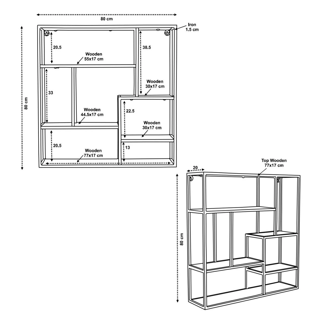 - Maße (B x T x H): 80 x 20 x 80 cm