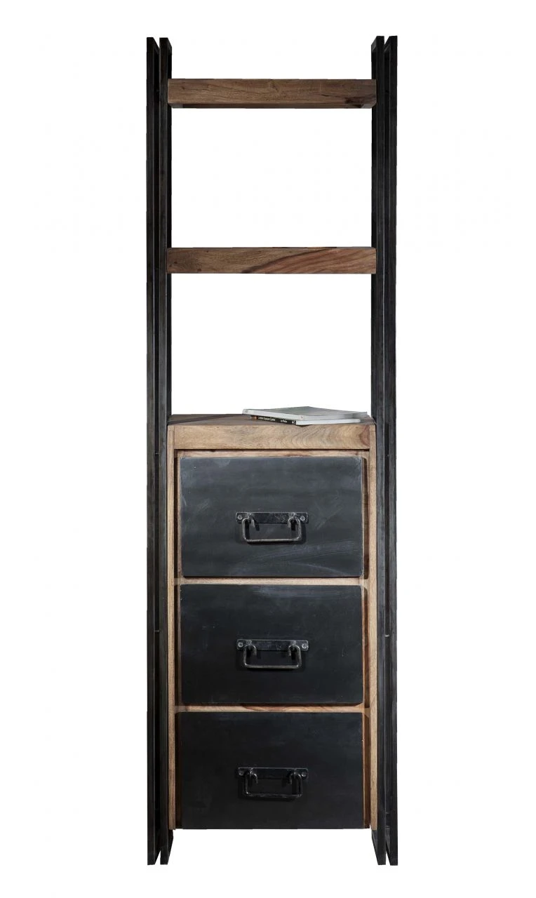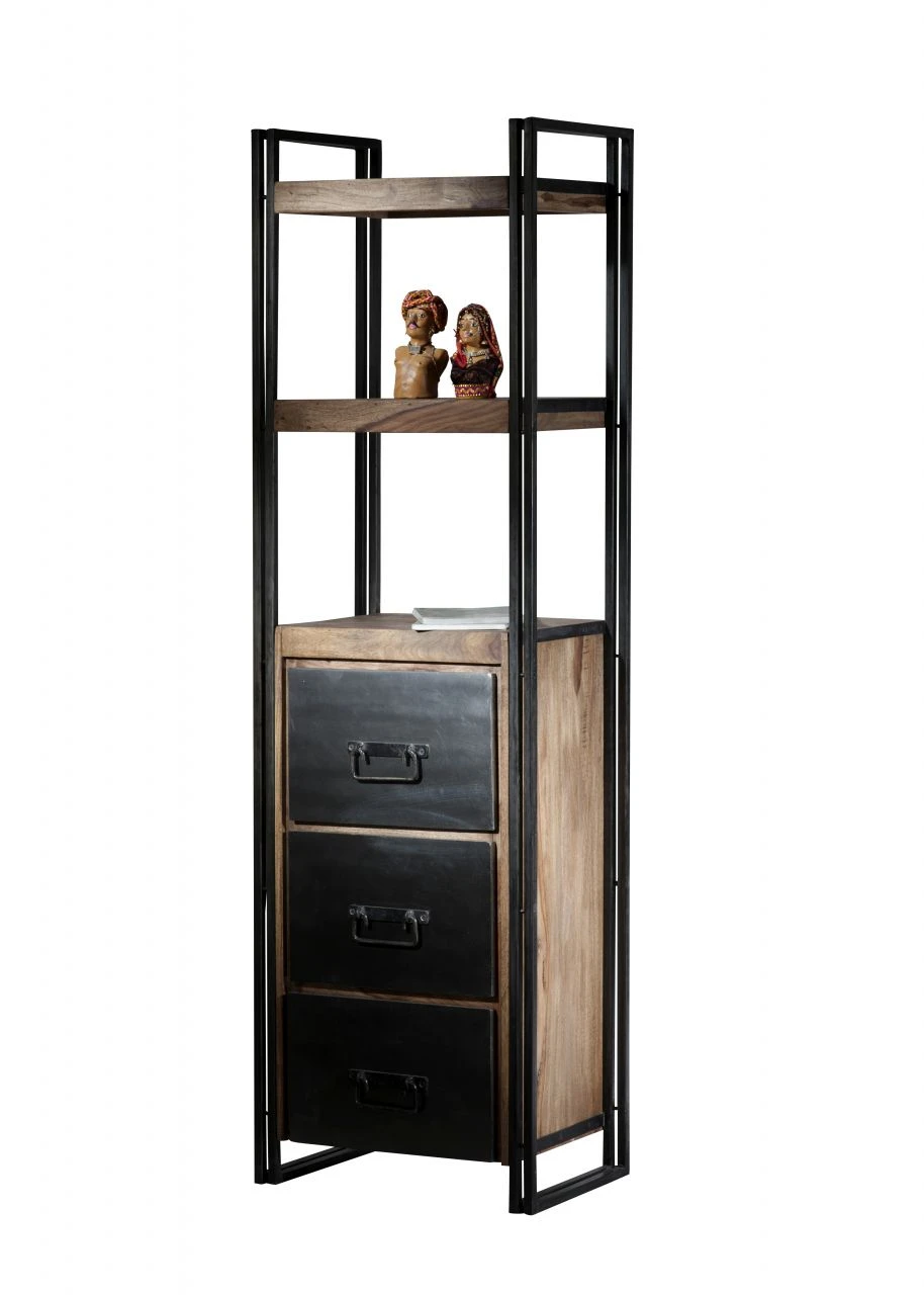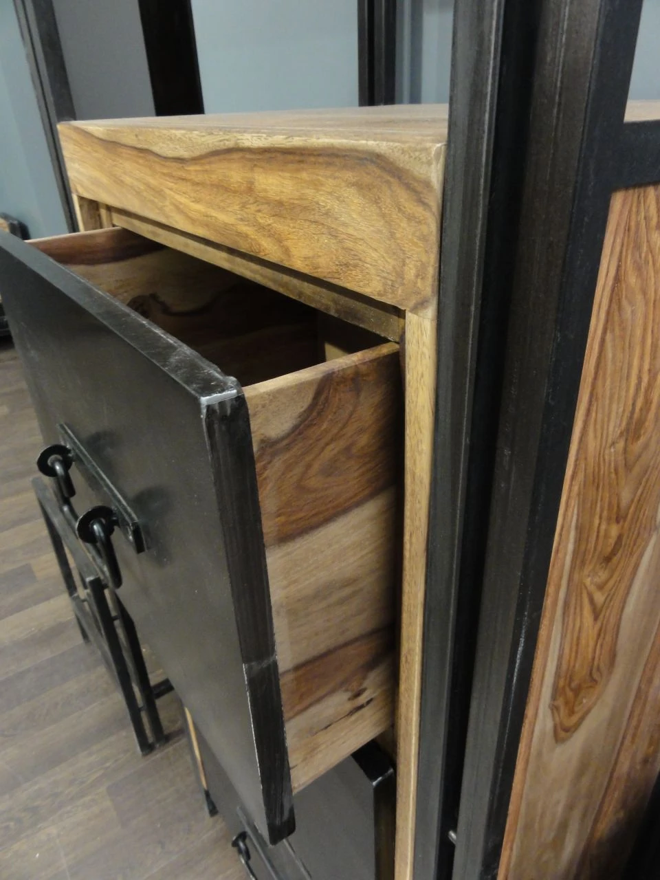 Dieses moderne Möbel im Factory Design ist ein Blickfang in jedem Ambiente. Das Metall und das Holz wurden in aufwändiger Handarbeit auf alt getrimmt, um durch Used Look ein stimmiges Bild zu erreichen. Gerade die Kombination mit normalen Möbeln ist sehr reizvoll und schon wenige Teile reichen, um in bestehender Einrichtung ein völlig neues Ambiente zu erschaffen