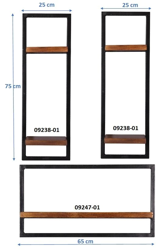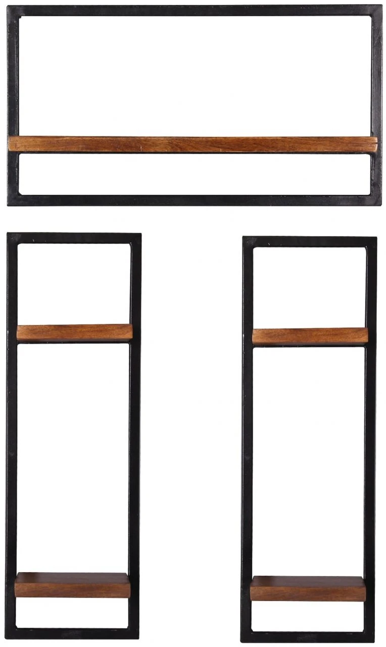 Dieses Set besteht aus 3 Wandregalen mit Böden aus Mangoholz und einem auf antik getrimmten Metallrahmen. Die Regale können Sie ganz individuell gestaltet aufhängen und somit Ihrer Kreativität freien Lauf lassen. Natürlich können Sie die Regale auch einzeln in verschiedenen Räumen verwenden. Die Nutzung ist also äußerst vielseitig.