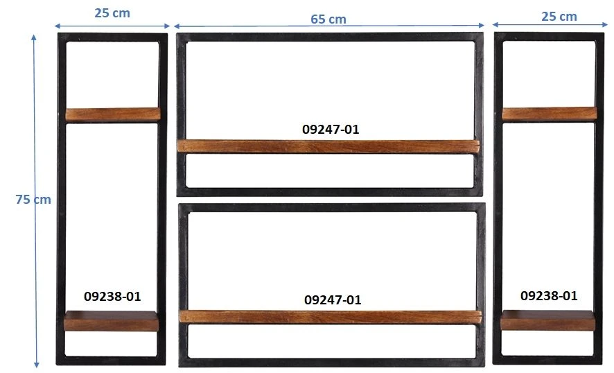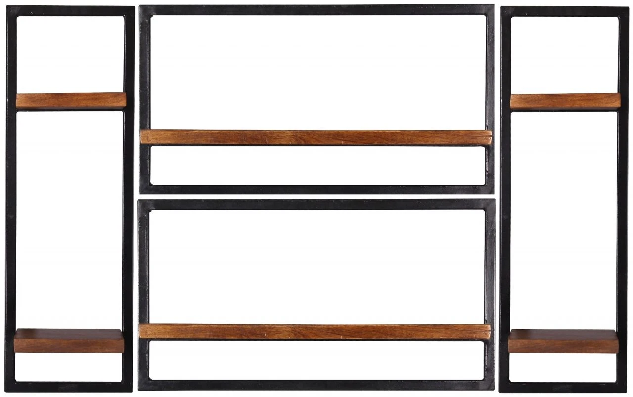 Dieses Set besteht aus 4 Wandregalen mit Böden aus Mangoholz und einem auf antik getrimmten Metallrahmen. Die Regale können Sie ganz individuell gestaltet aufhängen und somit Ihrer Kreativität freien Lauf lassen. Natürlich können Sie die Regale auch einzeln in verschiedenen Räumen verwenden. Die Nutzung ist also äußerst vielseitig.