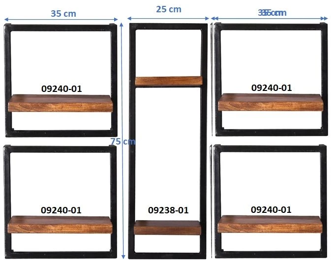 Dieses Set besteht aus 5 Wandregalen mit Böden aus Mangoholz und einem auf antik getrimmten Metallrahmen. Die Regale können Sie ganz individuell gestaltet aufhängen und somit Ihrer Kreativität freien Lauf lassen. Natürlich können Sie die Regale auch einzeln in verschiedenen Räumen verwenden. Die Nutzung ist also äußerst vielseitig.