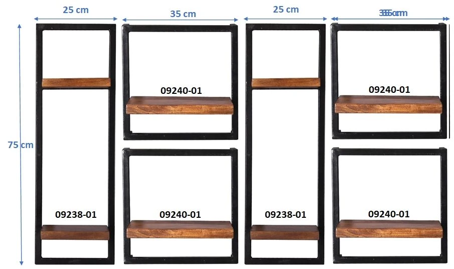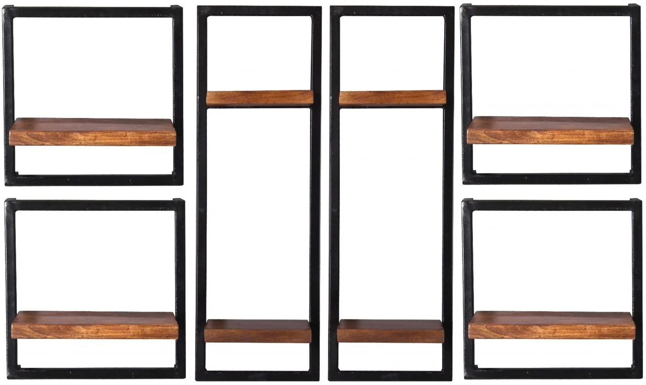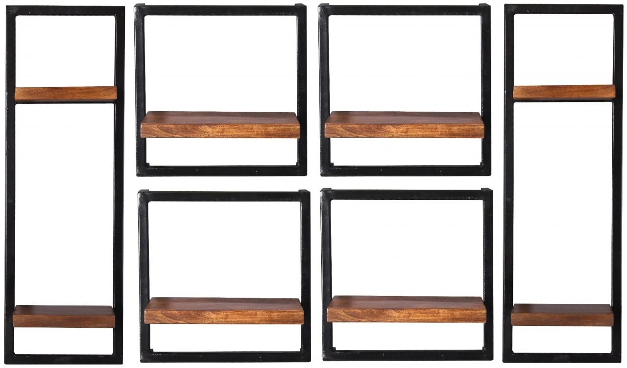 Dieses Set besteht aus 6 Wandregalen mit Böden aus Mangoholz und einem auf antik getrimmten Metallrahmen. Die Regale können Sie ganz individuell gestaltet aufhängen und somit Ihrer Kreativität freien Lauf lassen. Natürlich können Sie die Regale auch einzeln in verschiedenen Räumen verwenden. Die Nutzung ist also äußerst vielseitig.