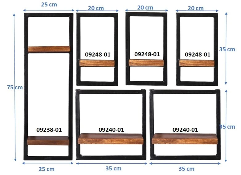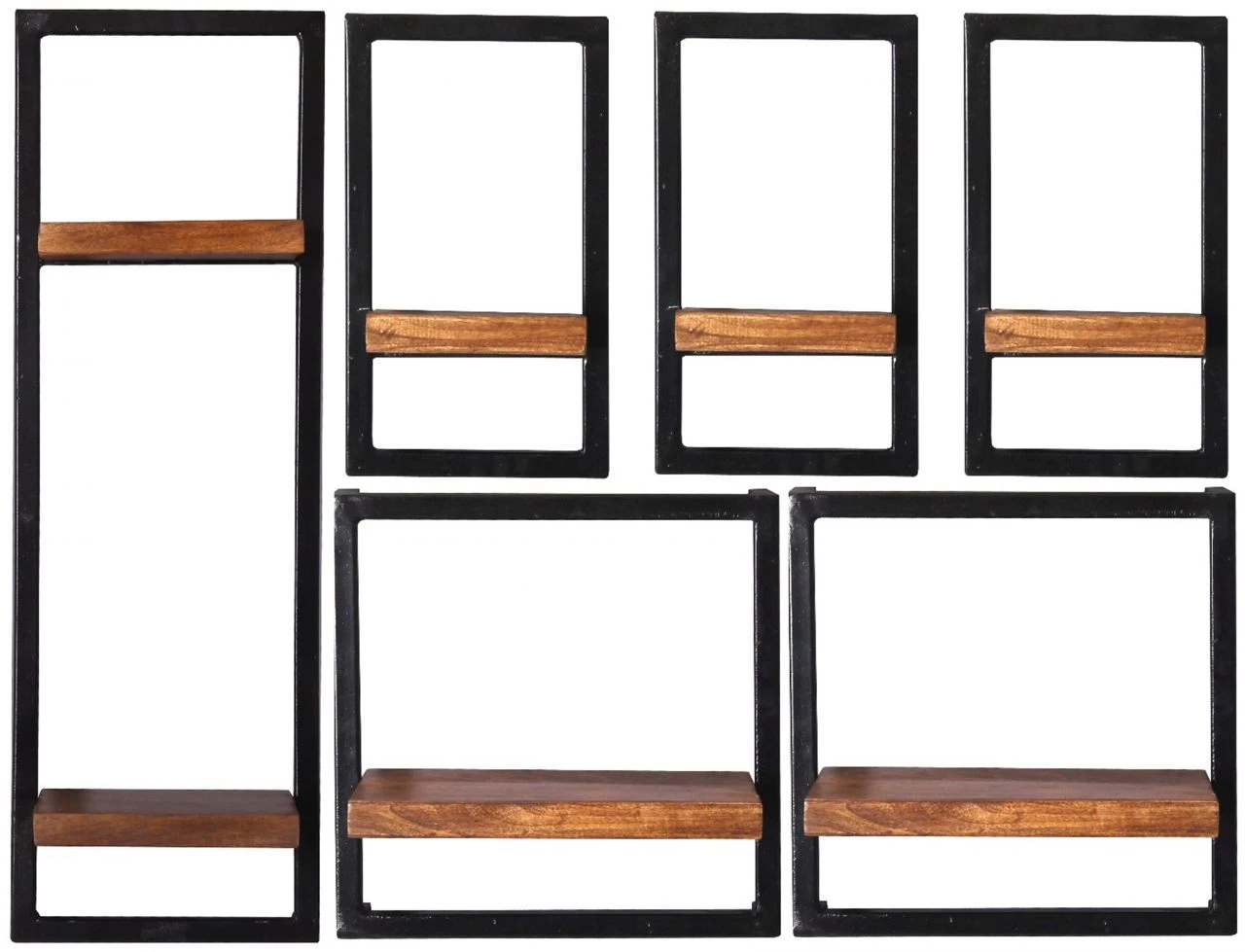 Dieses Set aus 6 Wandregalen mit Mangoholz und auf antik getrimmten Metallrahmen können Sie ganz individuell gestaltet aufhängen und somit Ihrer Kreativität freien Lauf lassen. Natürlich können Sie die Regale auch einzeln in verschiedenen Räumen verwenden, die Nutzung ist also äußerst vielseitig.