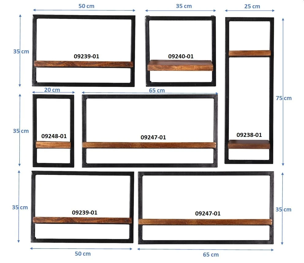 Dieses Set besteht aus 7 Wandregalen mit Böden aus Mangoholz und einem auf antik getrimmten Metallrahmen. Die Regale können Sie ganz individuell gestaltet aufhängen und somit Ihrer Kreativität freien Lauf lassen. Natürlich können Sie die Regale auch einzeln in verschiedenen Räumen verwenden. Die Nutzung ist also äußerst vielseitig.