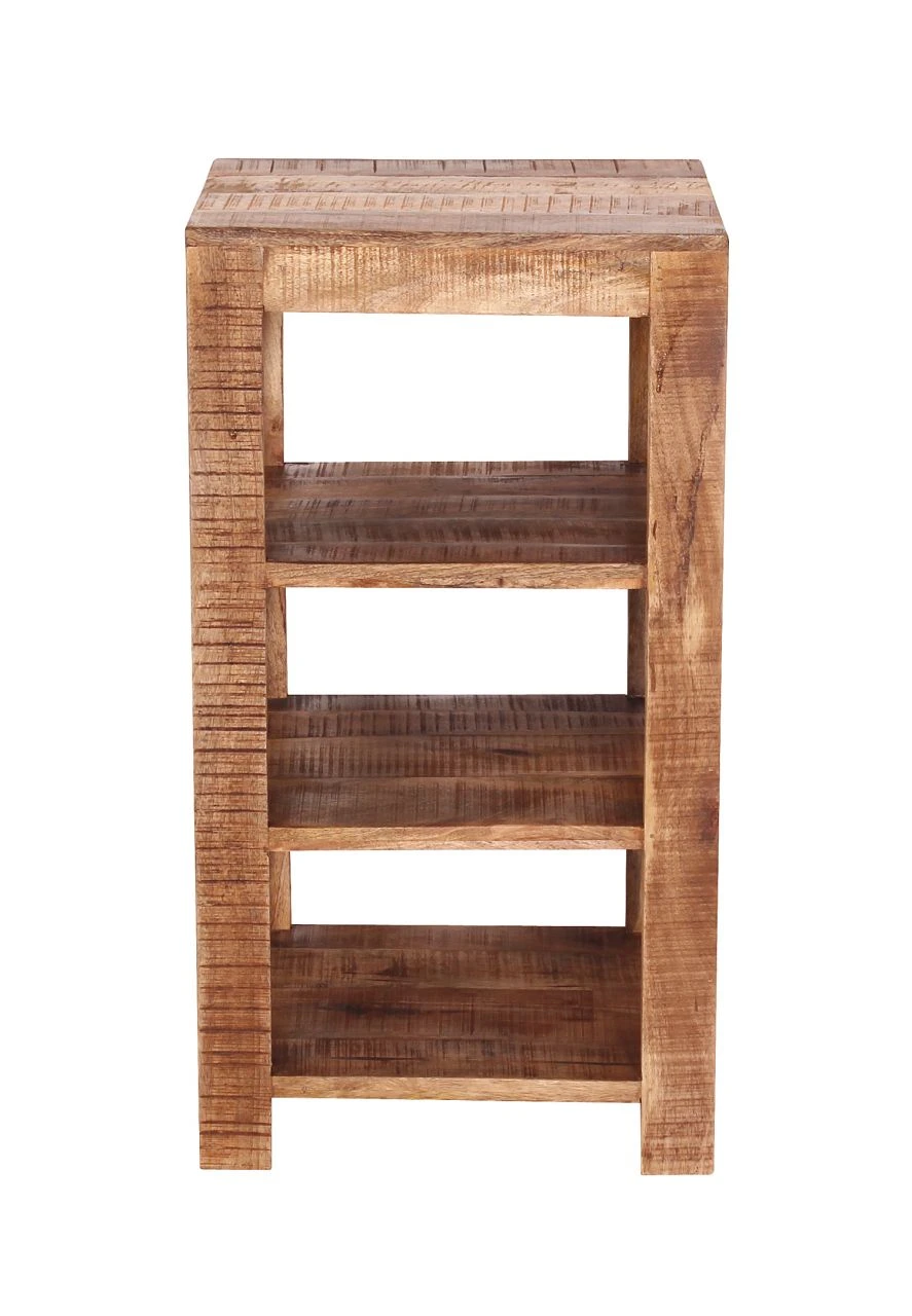 Jetzt kommt Ordnung ins Chaos. Das massive Regal ist aus massivem Mango Holz gefertigt – einem Holz mit dichten Maserungen. Das Holzregal verfügt über 3 Fächer, die Ihnen eine gute Aufbewahrungsmöglichkeit oder Präsentation für Lieblingsbücher, Dekorationen oder Bilderrahmen bietet. Die zeitlose Optik ist ein ganz besonderer Blickfang. Das Standregal ist sehr stabil und kann universell eingesetzt werden.