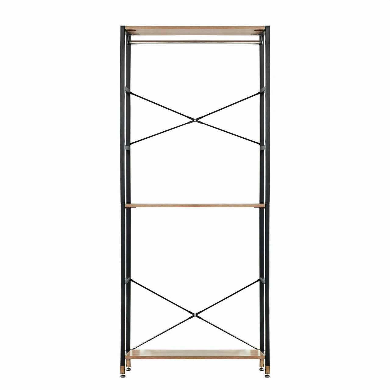 Jetzt kommt Ordnung ins Chaos. Mit diesem Regal-Set schaffen Sie zusätzlichen Stauraum und Platzmangel ist künftig kein Thema mehr. Mit einer Höhe von 210 cm bietet Ihnen das Wand-Regal Set genügend Platz für z.B. Bücher, Kleidungsstücke oder Dekorationsartikel. Die Kleiderstangen ermöglichen es Ihnen Jacken, Mäntel oder Blusen aufzuhängen. In den Schubladen findet sich Stauraum für Dinge des alltäglichen Lebens oder Wäsche. Während das robuste Gestell aus Metall besteht, sind die Einlegeböden und Schubladen aus MDF mit Akazie-Dekor. Dank der offenen Aufteilung des Standregals kann dieses auch als Raumteiler genutzt werden.