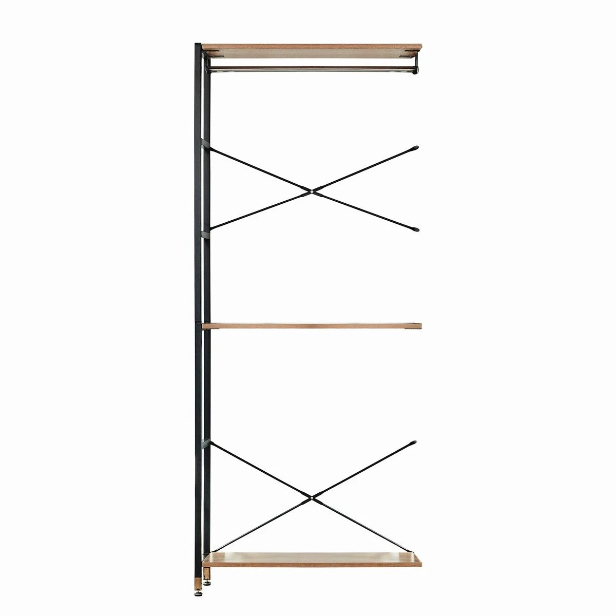 - 1 breites Regal, 1 schmales Regal, 2 Schubladen und 1 Kleiderstange