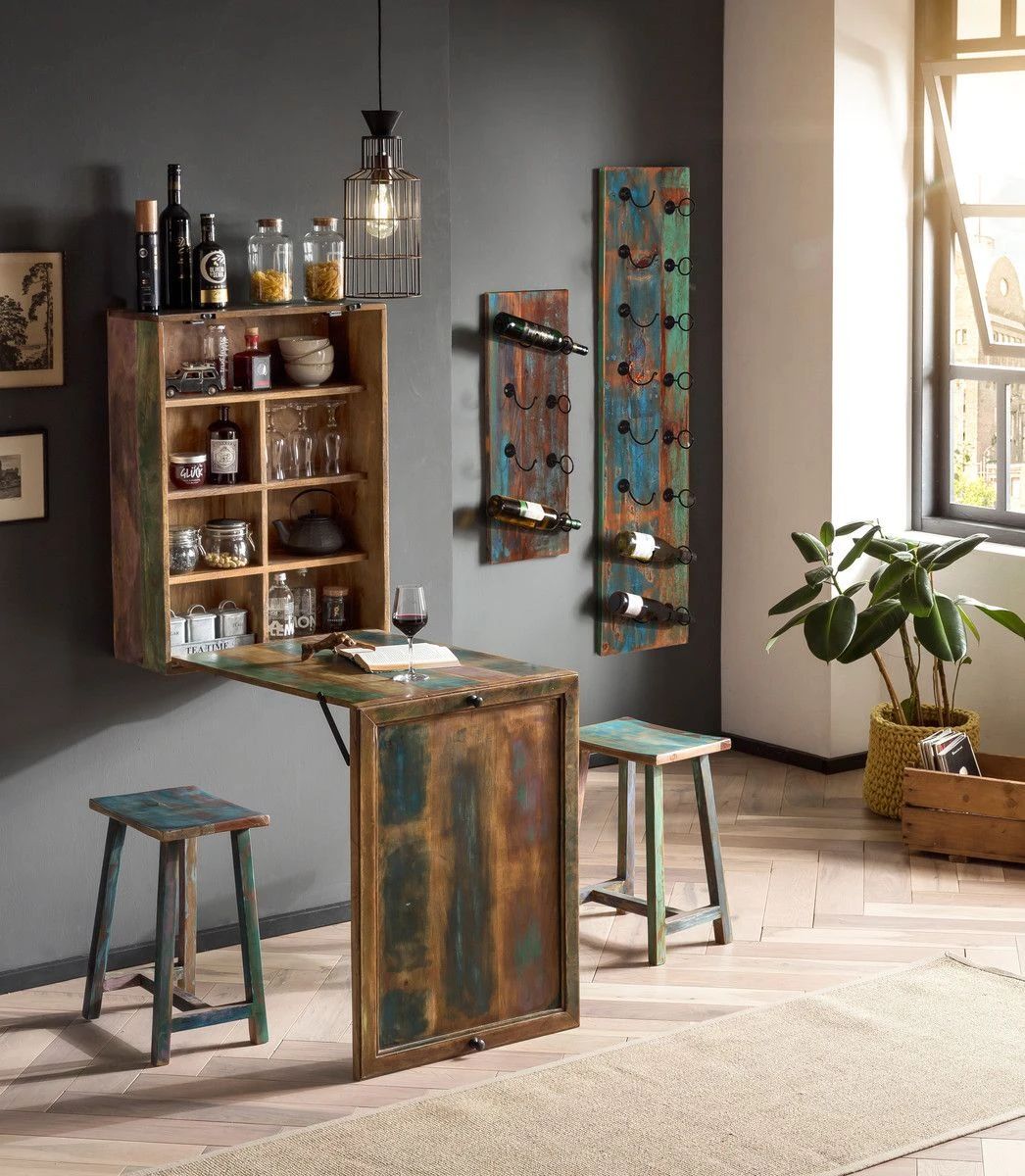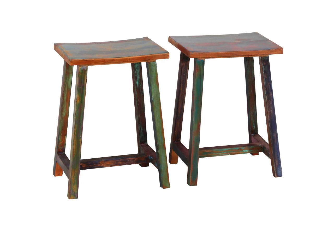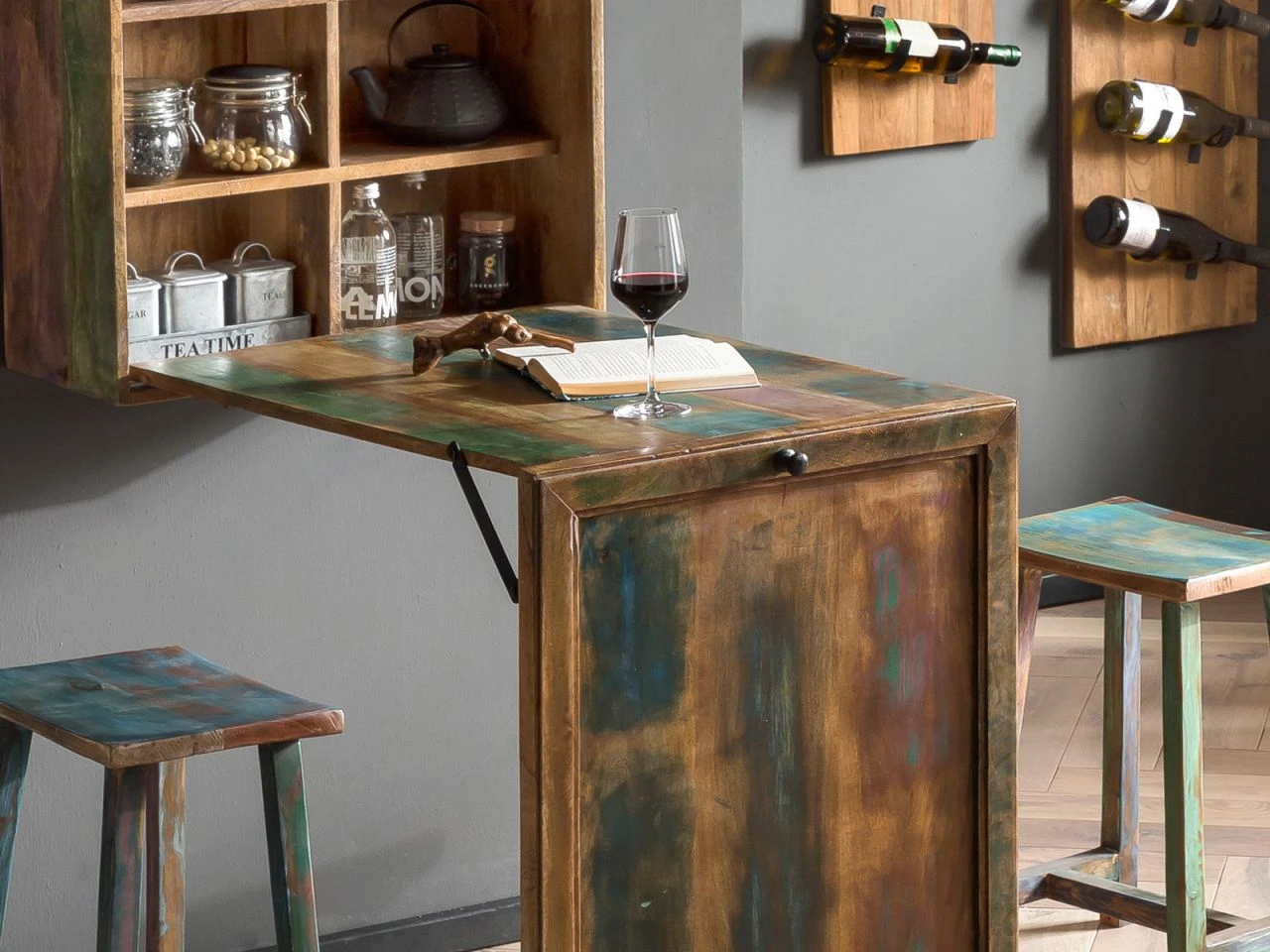 - Klapptisch mit 2 Hockern aus bunt lackiertem Altholz aus der Serie RIVERBOAT