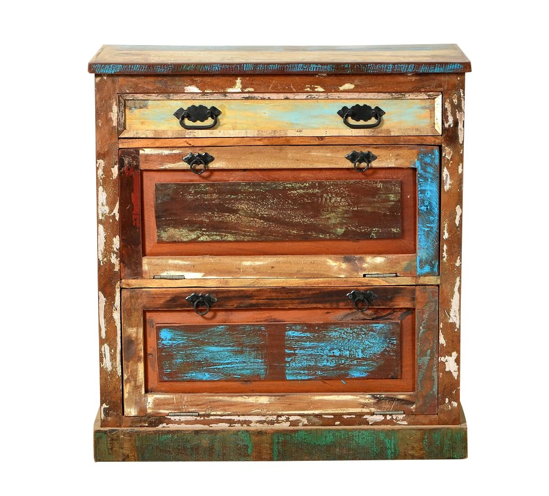 - Schuhschrank aus bunt lackiertem Altholz aus der Serie RIVERBOAT