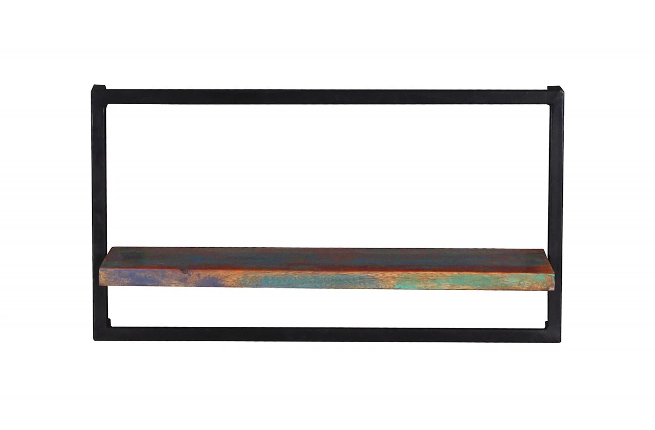 Dieses moderne Wandregal aus recyceltem Altholz mit einem antikschwarzen Metallrahmen können Sie ganz individuell gestaltet aufhängen, z.B. mit mehreren Regalen kombiniert oder auch Regale in verschiedenen Größen und Ausführungen. Somit können Sie Ihrer Kreativität freien Lauf lassen und Ihre Wände verschönern. Der Industrial-Look in Verbindung mit dem bunten Shabby-Chic ist dabei ein absoluter Eyecatcher. Das Massivholzregal ist vielseitig einsetzbar und auch in mehreren Räumlichkeiten zu verwenden. Hergestellt aus FSC-zertifiziertem Holz.