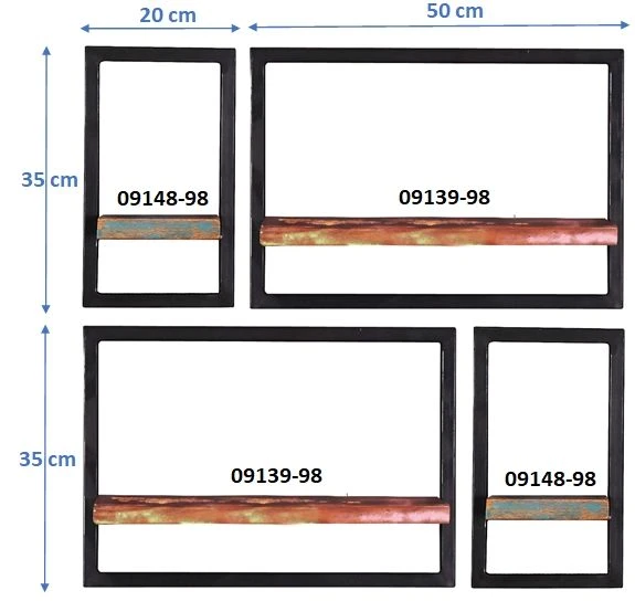 Dieses Set aus 4 Wandregalen mit bunt lackiertem, auf alt getrimmten recyceltem Holz und ebenfalls auf antik getrimmten Metallrahmen können Sie ganz individuell gestaltet aufhängen und somit Ihrer Kreativität freien Lauf lassen. Natürlich können Sie die Regale auch einzeln in verschiedenen Räumen verwenden, die Nutzung ist also äußerst vielseitig.