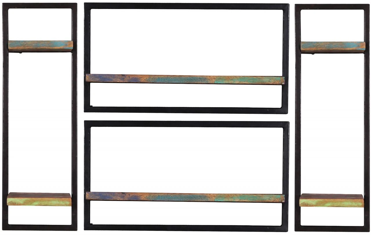 Dieses Set aus 4 Wandregalen mit bunt lackiertem, auf alt getrimmten recyceltem Holz und ebenfalls auf antik getrimmten Metallrahmen können Sie ganz individuell gestaltet aufhängen und somit Ihrer Kreativität freien Lauf lassen. Natürlich können Sie die Regale auch einzeln in verschiedenen Räumen verwenden, die Nutzung ist also äußerst vielseitig.