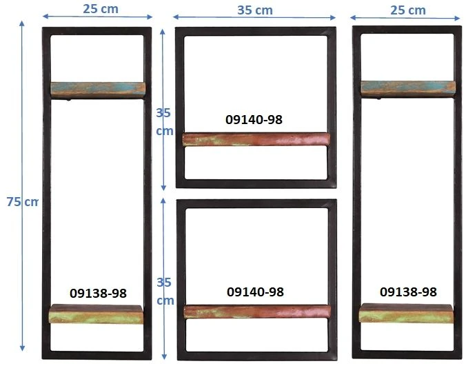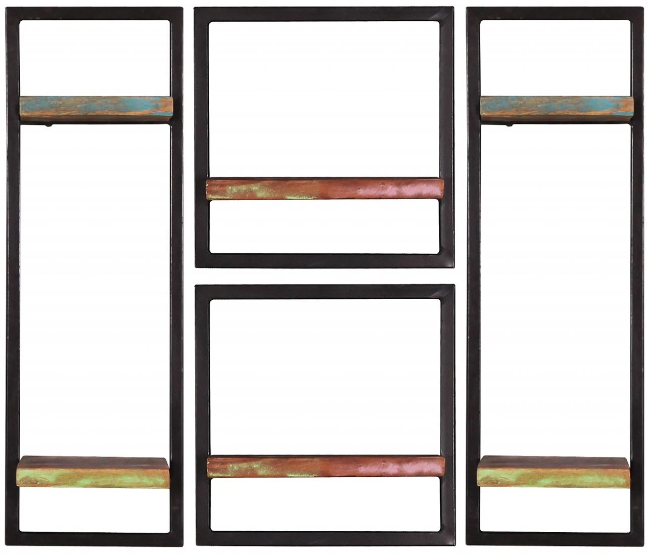 Dieses Set aus 4 Wandregalen mit bunt lackiertem, auf alt getrimmten recyceltem Holz und ebenfalls auf antik getrimmten Metallrahmen können Sie ganz individuell gestaltet aufhängen und somit Ihrer Kreativität freien Lauf lassen. Natürlich können Sie die Regale auch einzeln in verschiedenen Räumen verwenden, die Nutzung ist also äußerst vielseitig.