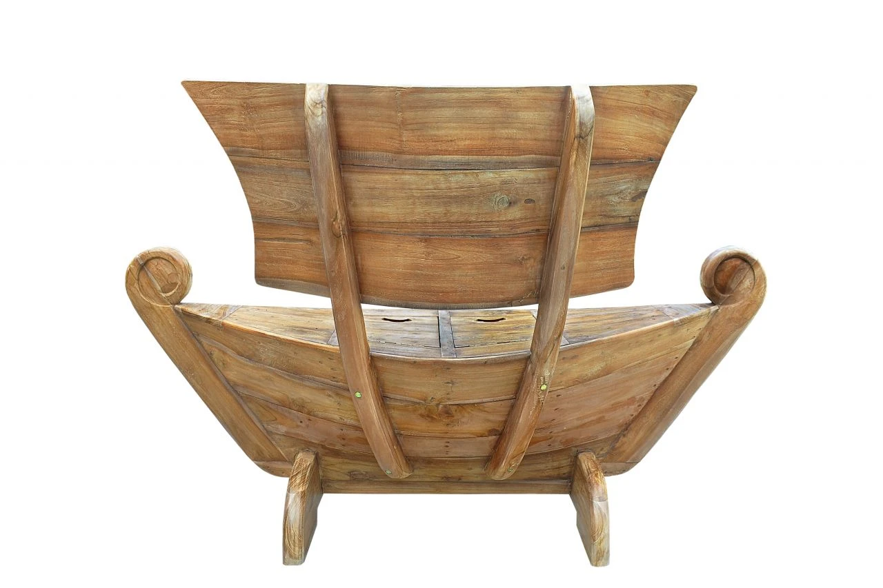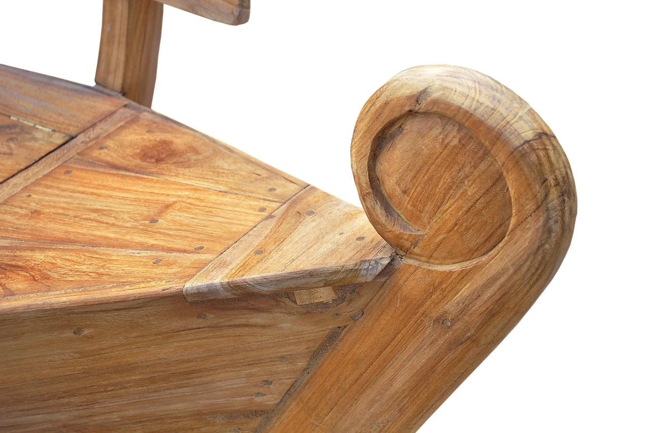 Teakholz, handwerkliche Fertigung, Verzicht auf moderne Hilfsmittel – dies sind alles Grunde, warum sich diese massive Holzbank in Bootsform sofort von der Masse abhebt. Die zwei eingebauten Klappen, bieten genügend Stauraum für diverse kleinere Utensilien. Auf der Sitzbank können 1 bis 2 Personen Platz finden. Diese Möbel haben einfach deutlich mehr Charme und Ausstrahlung. Zudem sind sie ein garantierter Blickfang in Ihrem Zuhause.