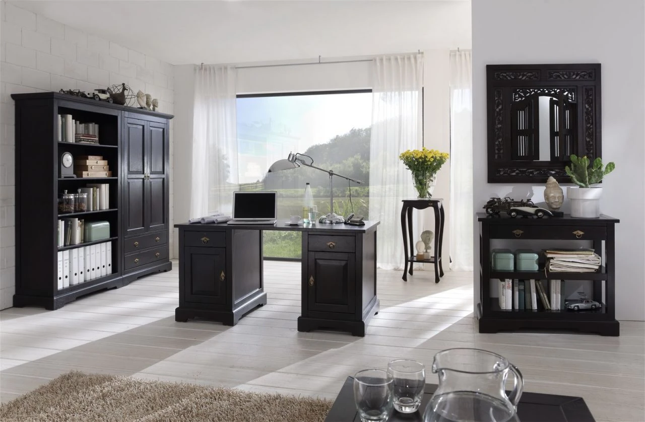 Liebevolle Handarbeit, Stil und Charme der Kolonialzeit, Behaglichkeit fern der Hektik des modernen Alltags – alles wichtiger denn je. Dieser Aktenschrank aus massiver Akazie in dem Farbton Antikfinish ist ein echter Blickfang. Sein antikes Flair lässt es zu, dass er sich problemlos in modernes Mobiliar integrieren lässt, so ist er gerade für den angesagten Landhausstil wie gemacht, in den Shabby Chic und Vintage Design lässt er sich ebenfalls problemlos integrieren. Auch als zusätzlicher Büroschrank oder im Esszimmer als zusätzliches Stauregal wird dieses Schmuckstück überzeugen. Hinter zwei Türen mit drei verstellbaren Regalböden und zwei Schubladen findet sich jede Menge Platz und ausreichend Stauraum. Lassen Sie die Schönheit des antik wirkenden Schrankes zur Geltung kommen.