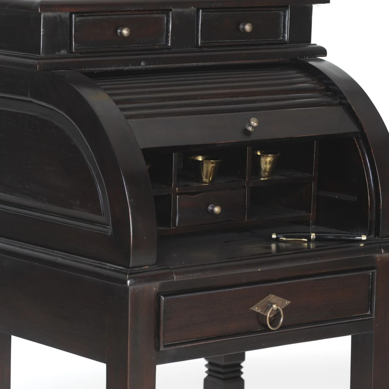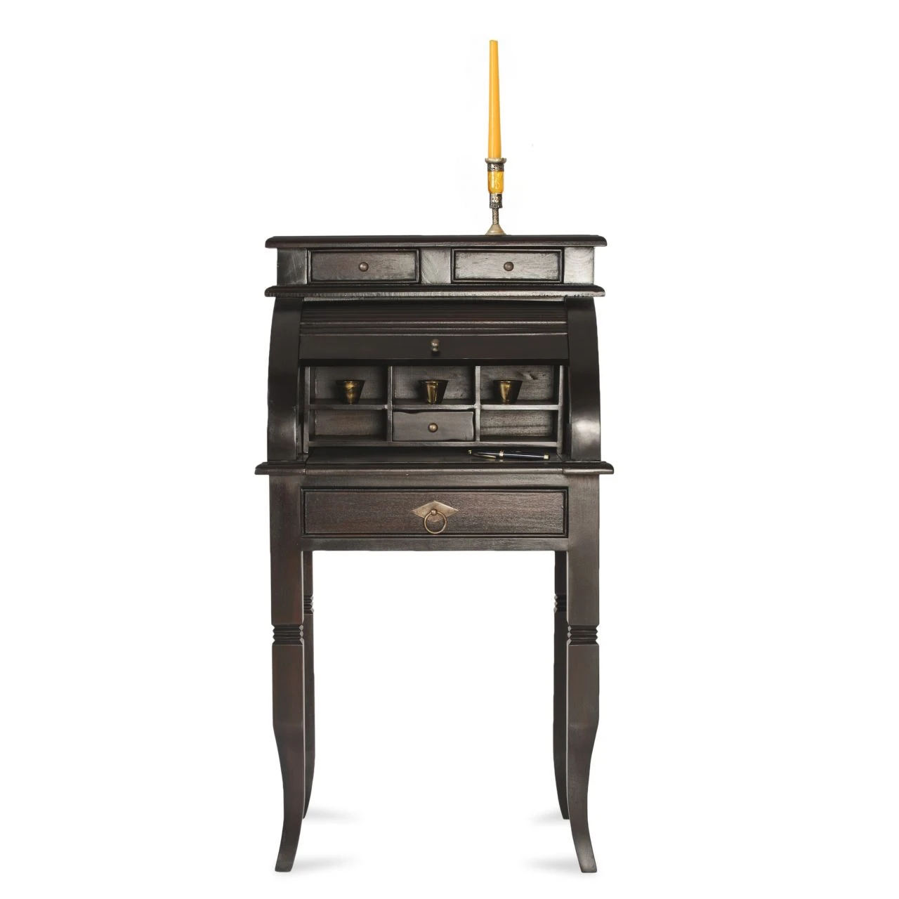 Sie suchen einen besonderen Ort für Ihre Schreibarbeiten? Dann ist dieser Sekretär genau der Richtige für Sie. Er überzeugt durch sein zeitloses Design im Vintage-Stil und die großzügige Schreibfläche. Hinter dem Rollladen verbergen sich 5 kleine offene Fächer und eine kleine Schublade, die genügend Platz für diverse Büroutensilien bieten. Eine große Schublade unter der Schreibfläche und zwei kleinere Schubladen über dem Rollladen sorgen für weiteren Stauraum.