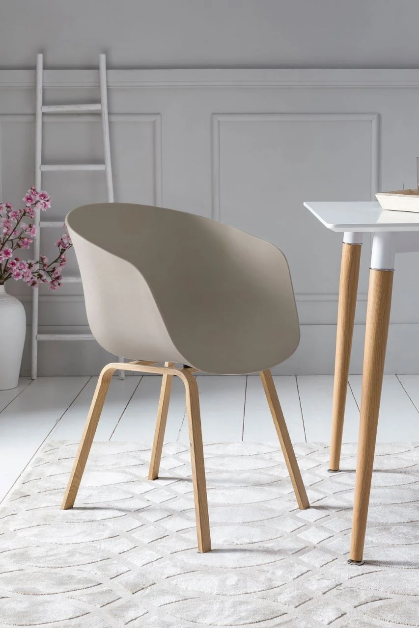 Die perfekte Sitzgelegenheit für Sie und Ihre Gäste. Das moderne Esszimmerstuhl 2er Set im skandinavischen Design besticht durch seine Runde Sitzschale aus Kunststoff. Das Gestell aus Metall in Holzoptik gewährleistet nicht nur einen sicheren Stand, sondern bietet auch einen großartigen Kontrast zur Sitzschale. Durch den abgerundeten Sitz- und Rückenbereich entsteht ein angenehmer Sitzkomfort der Extraklasse. Ein bequemer Schalenstuhl, der dank seiner zeitlosen Erscheinung zu vielen Einrichtungsstilen passt.