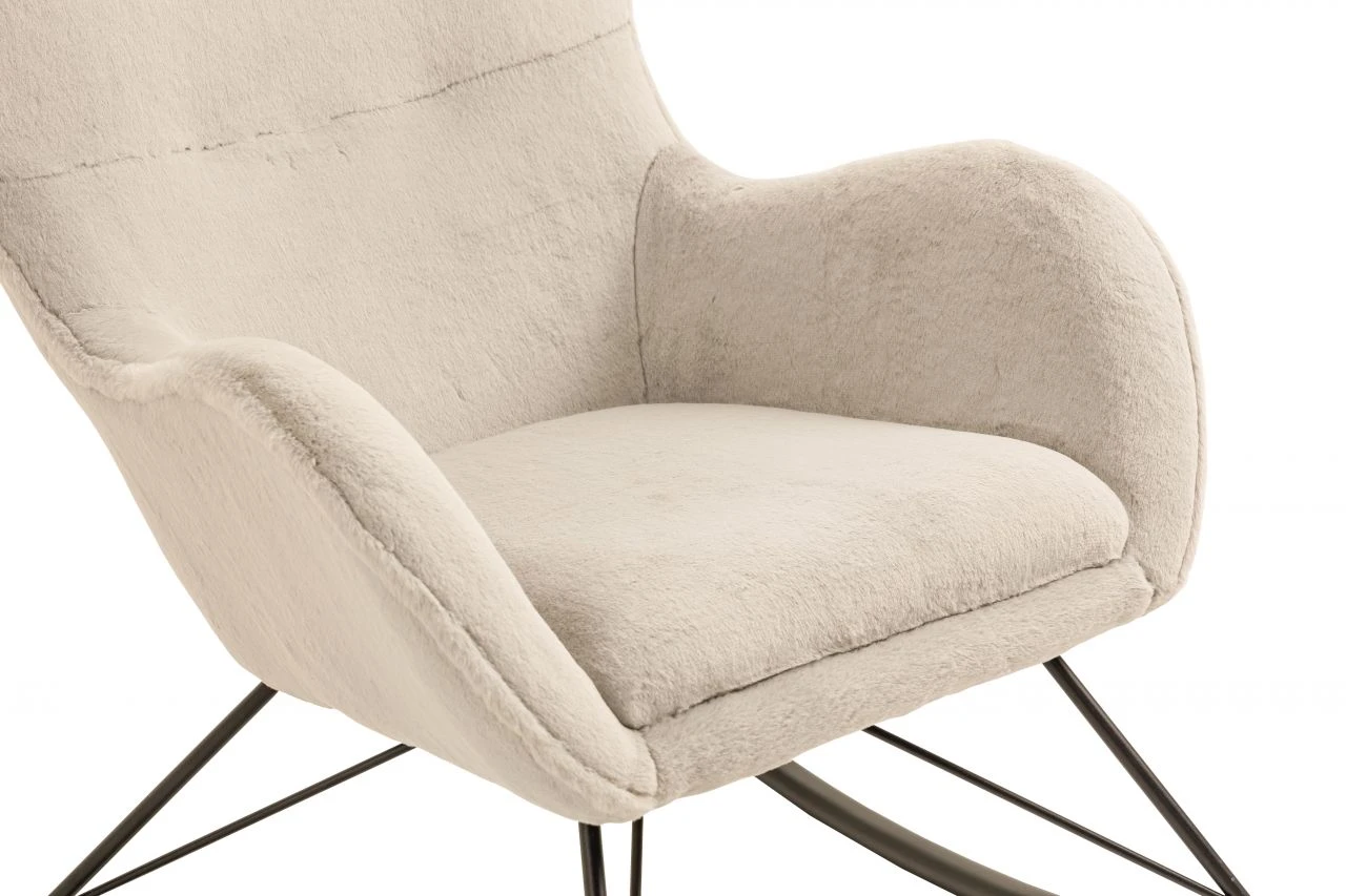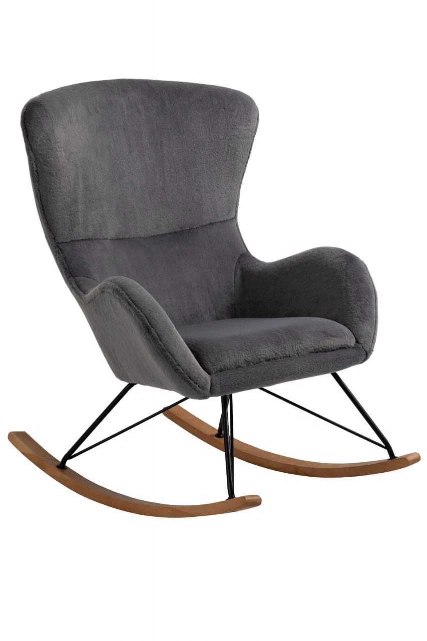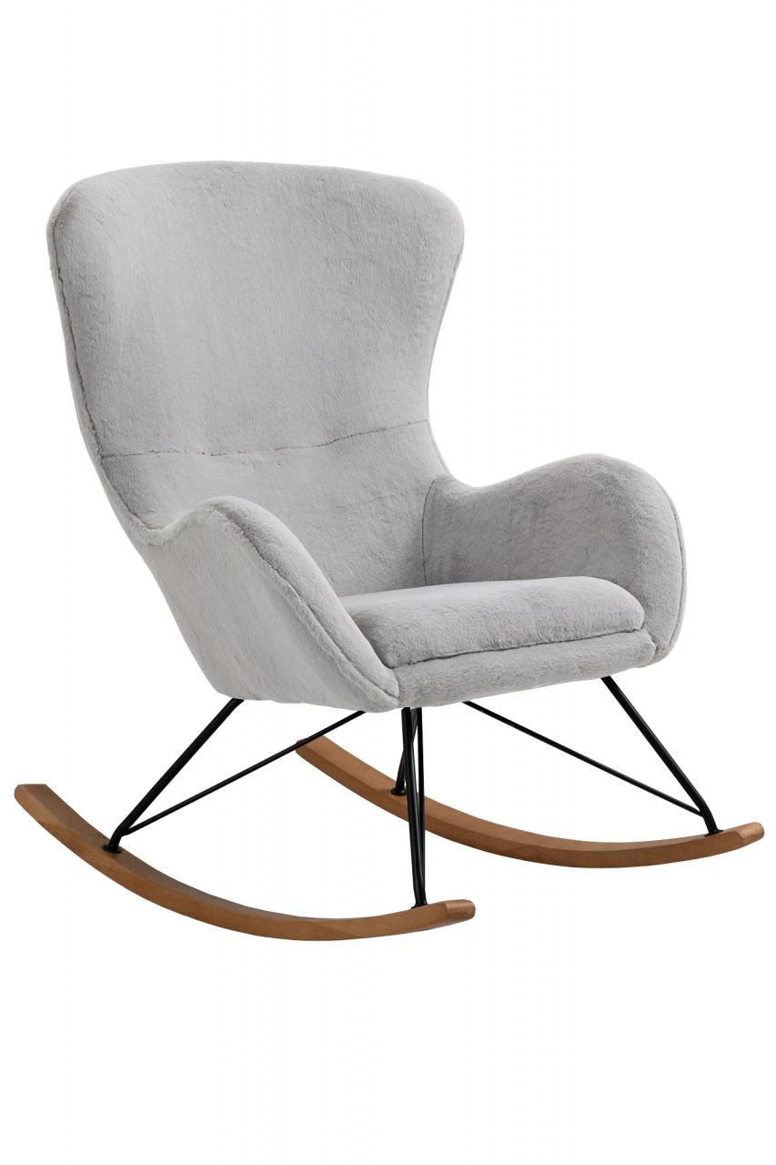 Dieser Schaukelstuhl in weicher Lammfelloptik wird zum absoluten Lieblingsstück im Wohnbereich. Der modern konzipierte Schaukelsessel bietet dank geschwungenen Armlehnen und Rückenlehne optimalen Sitzkomfort. Die kuschlig weiche Sitzfläche aus hochwertigem Kunstfell lädt zusätzlich zum Einkuscheln ein. Abgerundet wird der angesagte Scandi Style von einem schwarz lackierten Metallgestell, sowie Holzkufen aus massiver Eiche. Das moderne Kufengestell sorgt für sanftes hin- und her wippen und macht den Schaukelstuhl zum idealen Begleiter für Wohnzimmer, Schlafzimmer oder Leseecke.
