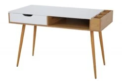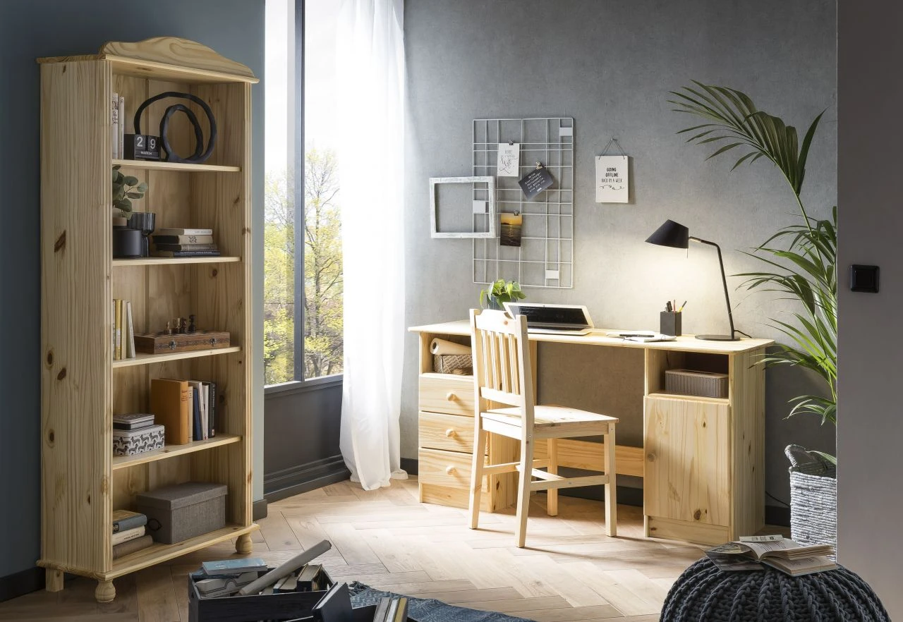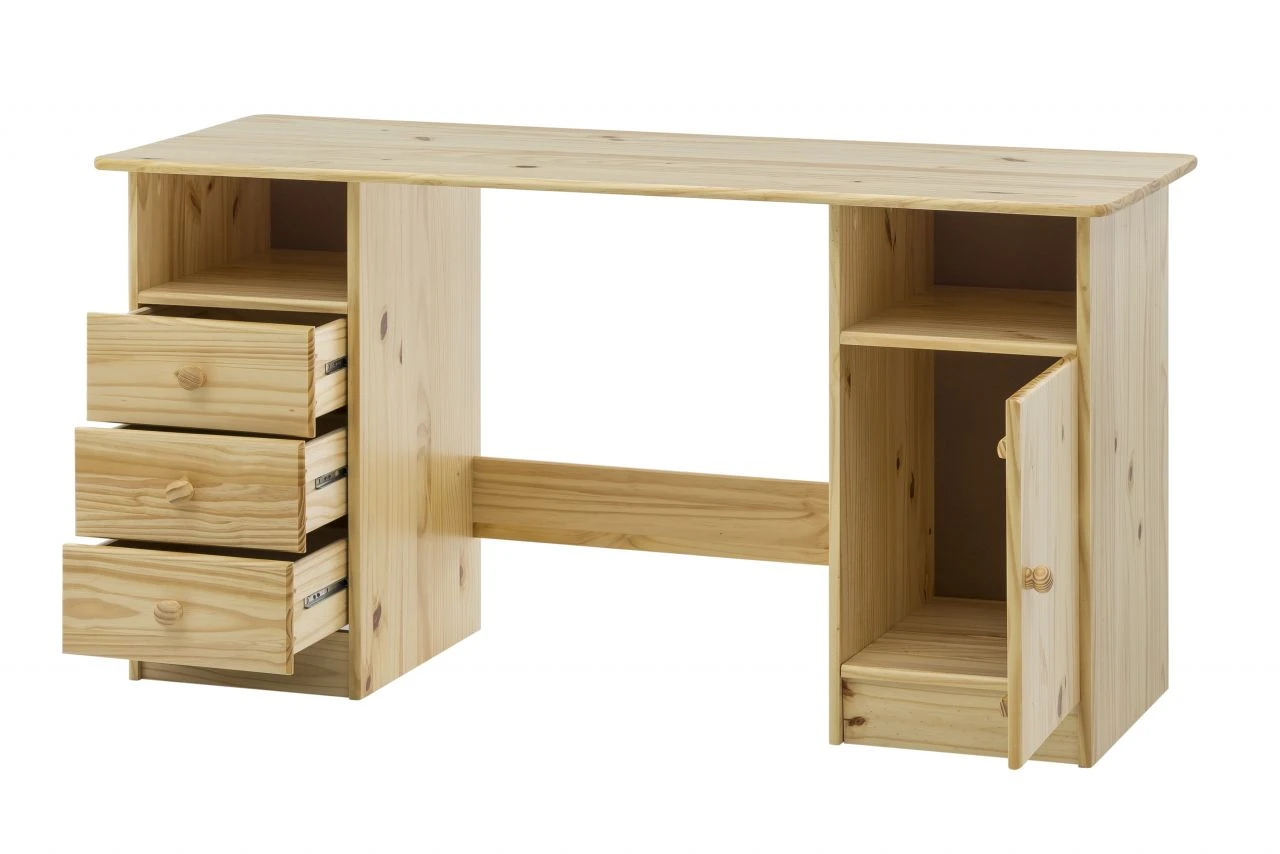 Dieser Schreibtisch sorgt mit 3 Schubladen, einem Schrankfach mit Tür und 2 offenen Fächern für erstaunlich viel Stauraum. Die massive Kiefer trotzt zudem erfolgreich dem alltäglichen Gebrauch und der damit verbundenen Abnutzung. Der Schreibtisch überzeugt außerdem mit seinem zurückhaltenden Design und seiner kompakten Größe.