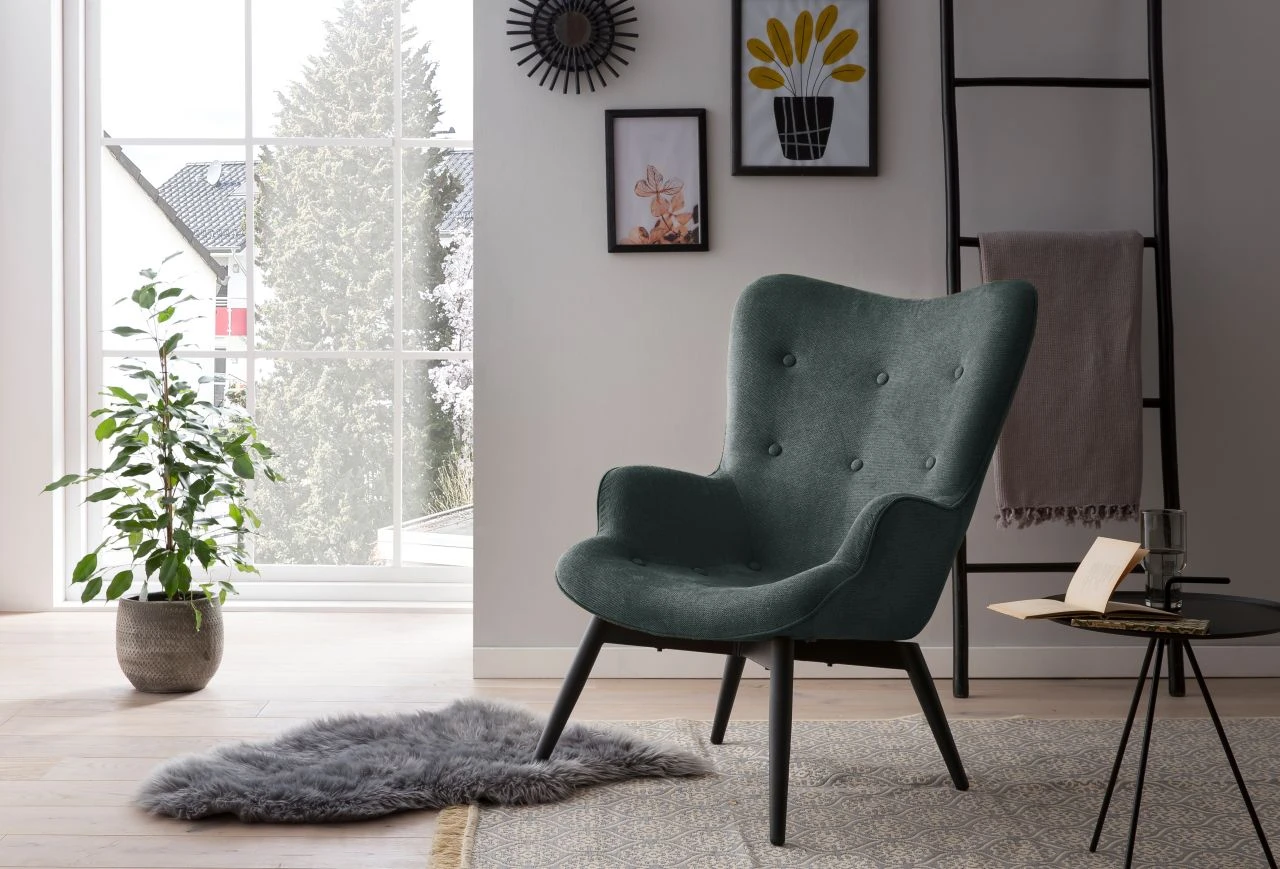 Entfliehen Sie dem Alltag und genießen Sie eine kleine Auszeit. Der moderne Polstersessel im skandinavischen Stil besticht durch seinen Bezug aus Strukturstoff und überzeugt mit seinen Zierknöpfen auf Sitz- und Rückenfläche. Das 4 Fuß Gestell aus schwarz pulverbeschichtetem Metall gewährleistet nicht nur einen sicheren Stand, sondern bietet auch einen großartigen Kontrast zum Bezug des Sessels. Durch die Polsterung an Sitz- und Rückenfläche und die stylische Form erleben Sie erstklassigen Sitzkomfort. Die abgerundete Form sorgt für einen weichen Look. Der Sessel kann im Wohnbereich zum Relaxen oder als Sitzgelegenheit im Wartebereich dienen. Egal wo er platziert wird, dieser Sessel ist ein echter Blickfang.