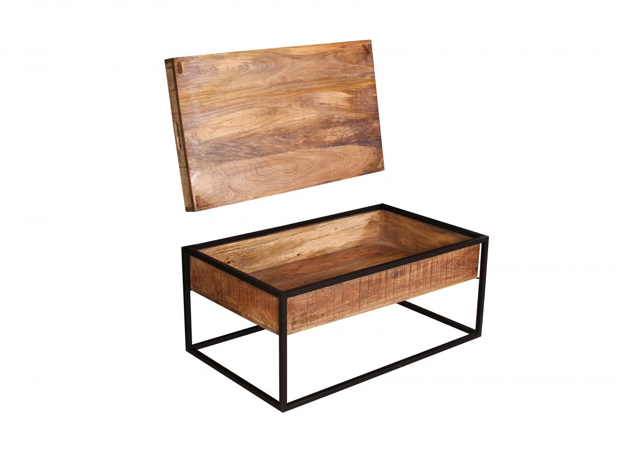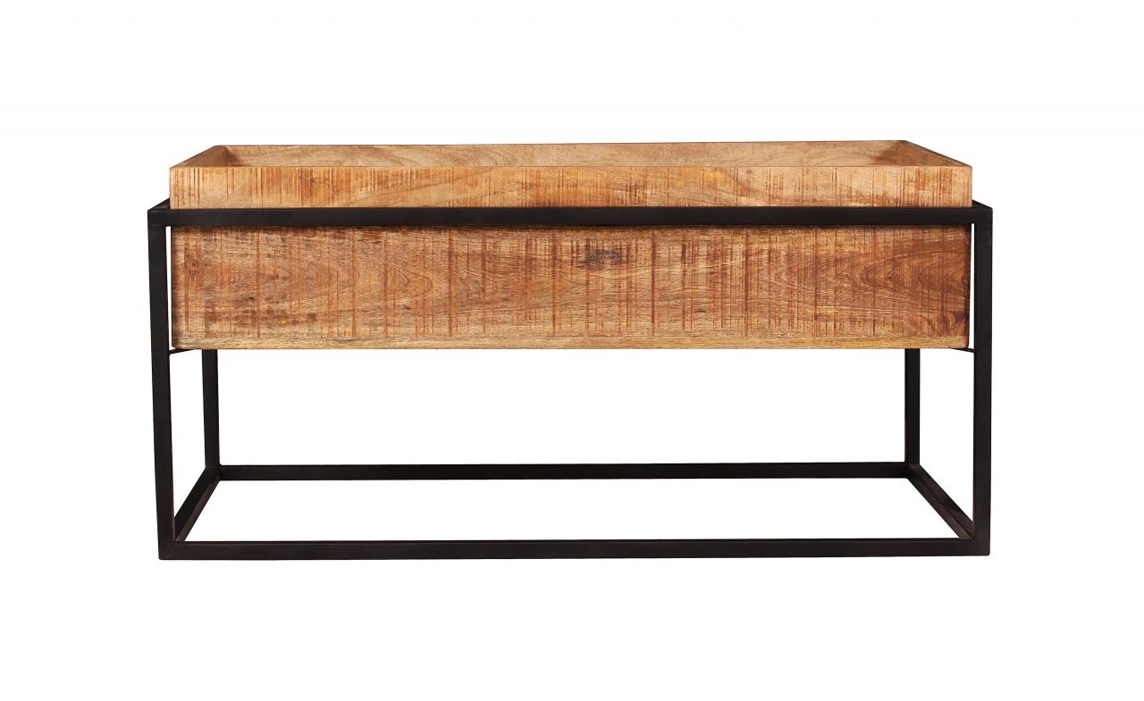 Sie möchten Ihre Wohnlandschaft mit einem Couchtisch aufwerten, der auch noch einen Extranutzen bietet? Das sollte Ihnen mit diesem Modell leicht gelingen, denn das Design ist zeitlos schön und das abnehmbare Tablett, sowie der darunter befindliche Stauraum, sind auch noch zusätzliche Eigenschaften, die im Alltag nicht ganz unbedeutend sind. So können Sie z.B. Zeitungen, Bücher oder andere kleine diverse Dinge in dem Staufach verschwinden lassen, während auf dem Tablett eine Blume oder andere Deko-Elemente Ihren Wohnraum verschönen. Dieser Couchtisch aus naturfarbigem Mangoholz mit trendigem schwarzen Kufengestell aus Metall ist eine Bereicherung in jedem Ambiente.