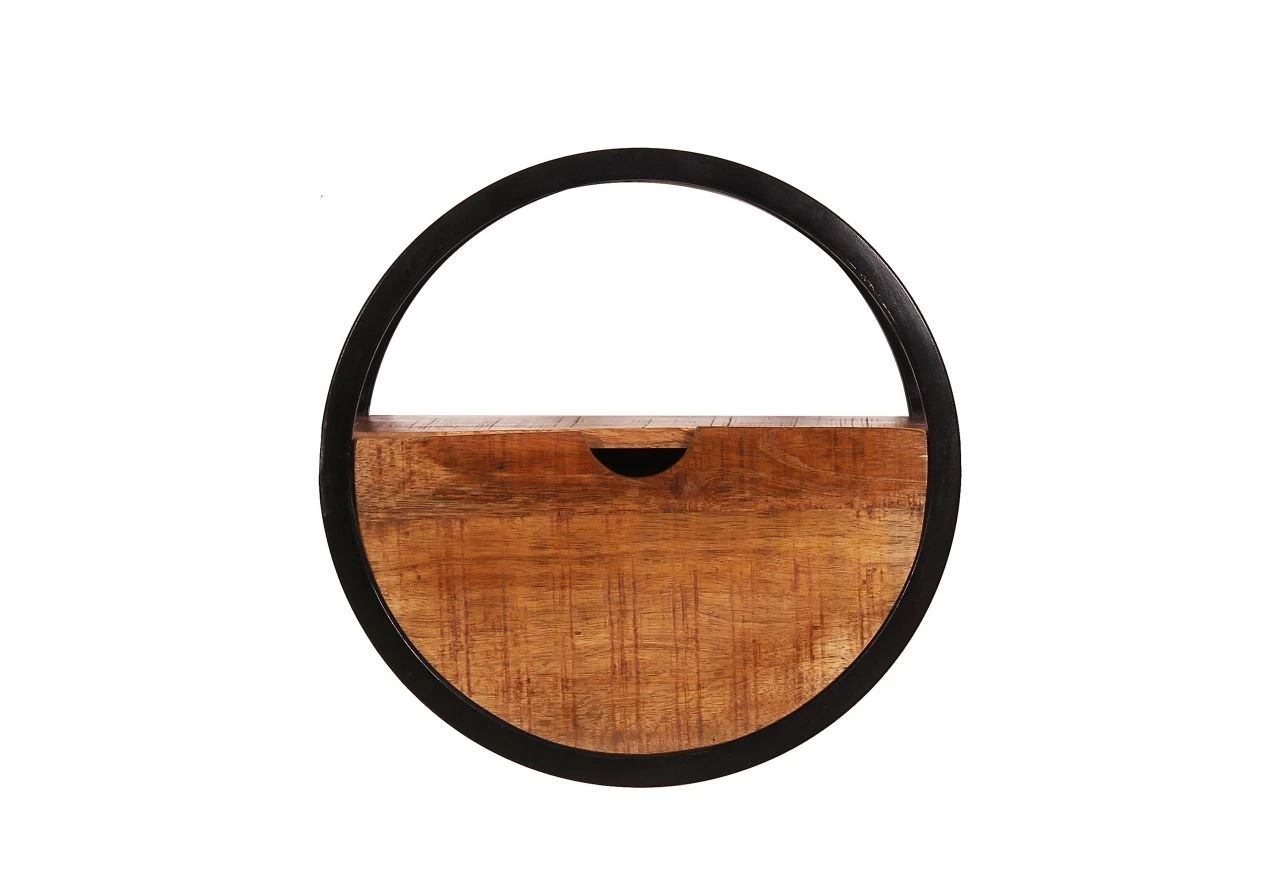 Dieses zauberhafte Wandregal hebt sich von der Masse ab. Das runde Regal aus naturfarbigem Mangoholz und einem antikschwarzen Metallrahmen können Sie ganz individuell gestaltet aufhängen und somit Ihrer Kreativität freien Lauf lassen. Der Industrial-Look ist dabei ein absoluter Eyecatcher. In der Schublade finden kleinere Dinge ihren Platz, auf der Ablage können Sie Dekoartikel platzieren. Das Massivholzregal ist vielseitig einsetzbar und kann in vielen Räumlichkeiten genutzt werden.
