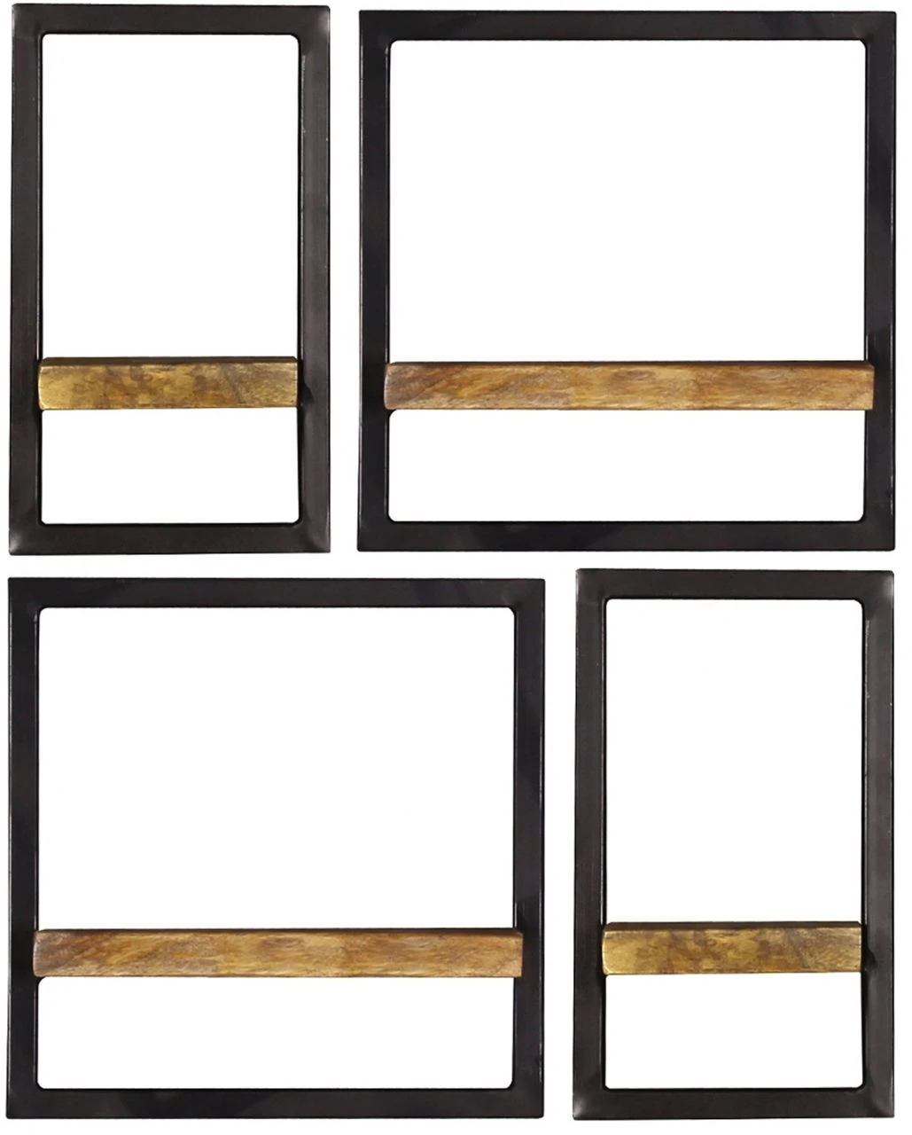 Dieses Set aus 4 Wandregalen mit naturfarbigem Mangoholz und auf antik getrimmten Metallrahmen können Sie ganz individuell gestaltet aufhängen und somit Ihrer Kreativität freien Lauf lassen. Natürlich können Sie die Regale auch einzeln in verschiedenen Räumen verwenden, die Nutzung ist also äußerst vielseitig.