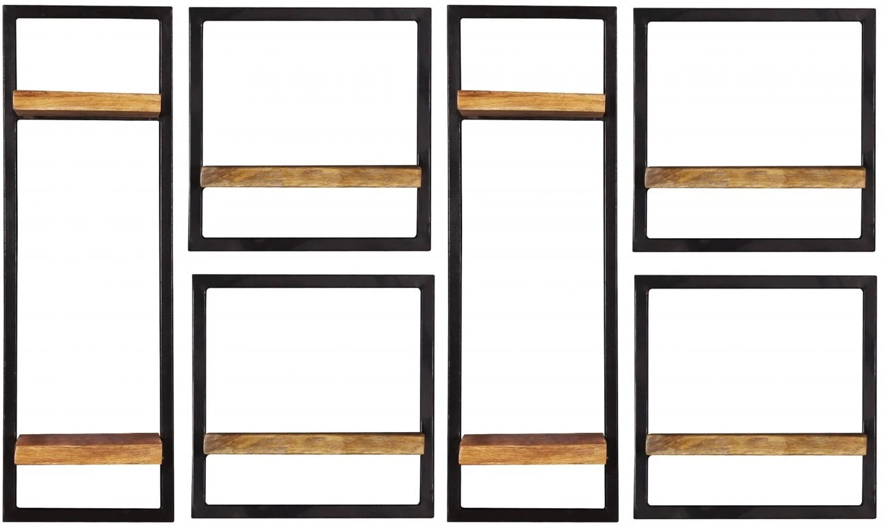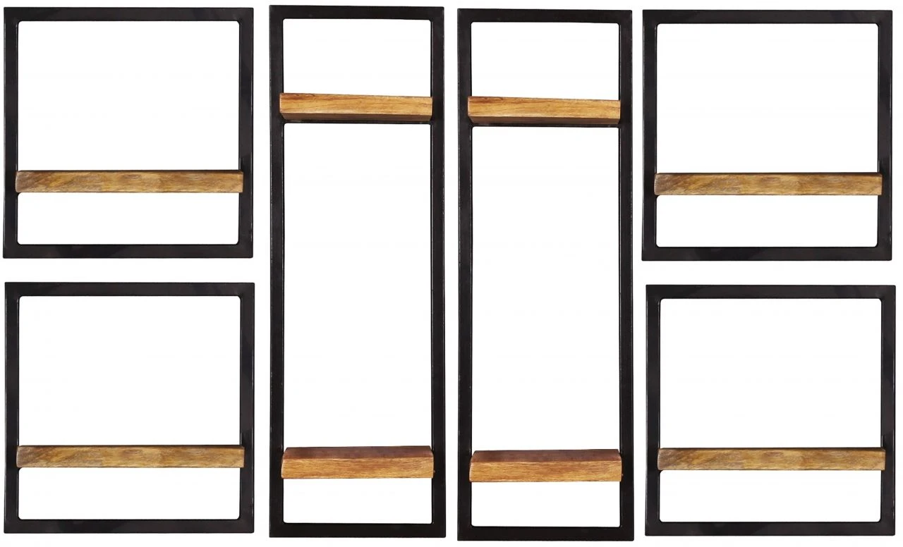 Dieses Set aus 6 Wandregalen mit naturfarbigem Mangoholz und auf antik getrimmten Metallrahmen können Sie ganz individuell gestaltet aufhängen und somit Ihrer Kreativität freien Lauf lassen. Natürlich können Sie die Regale auch einzeln in verschiedenen Räumen verwenden, die Nutzung ist also äußerst vielseitig.