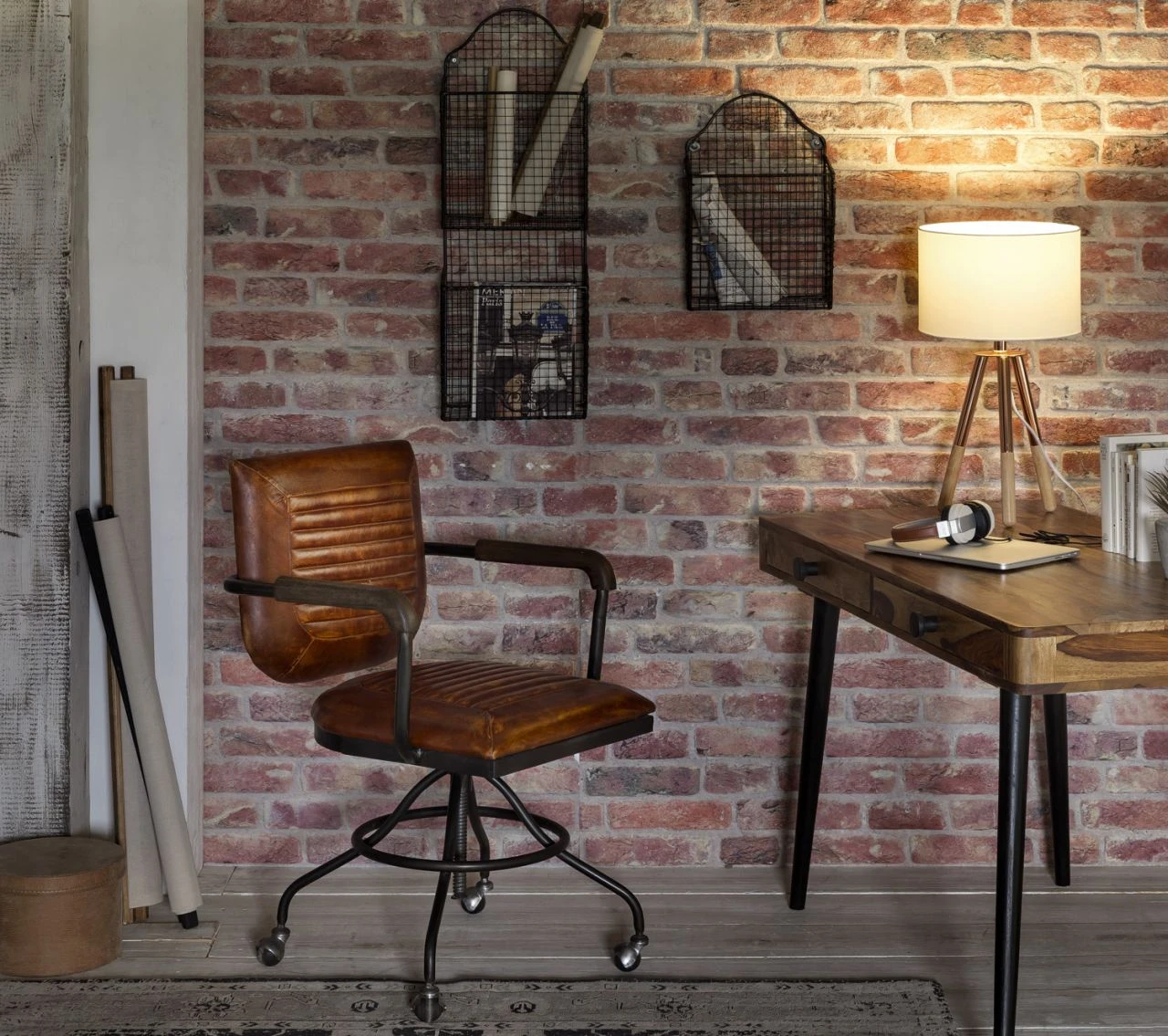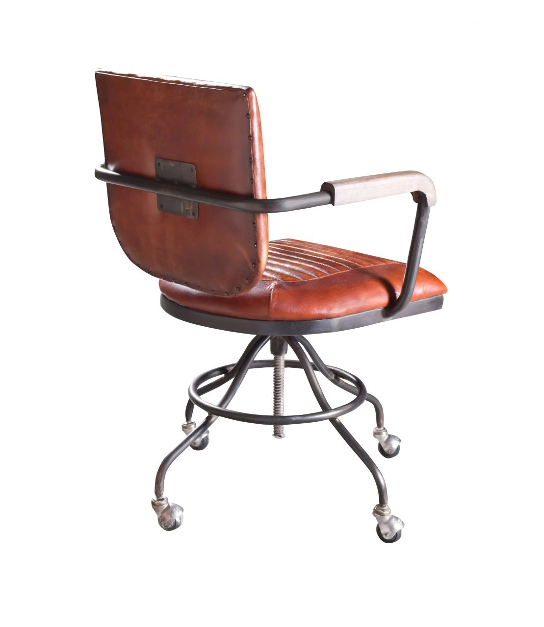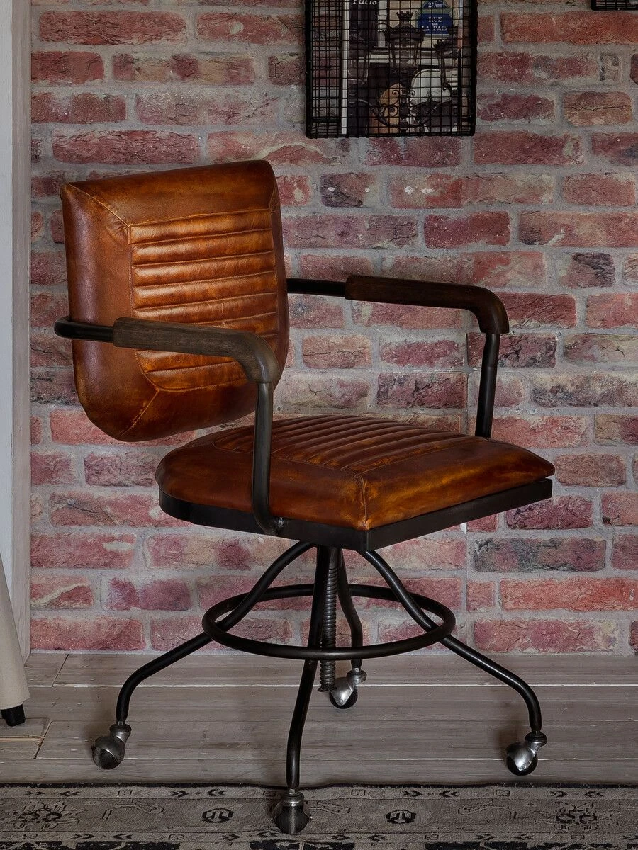Antiker Look, cooles Design aus der Zeit Anfang 20. Jahrhundert, richtig bequem und reine Handarbeit – das beschreibt diesen einzigartigen Drehstuhl mit Metallgestell auf 4 Rollen richtig.