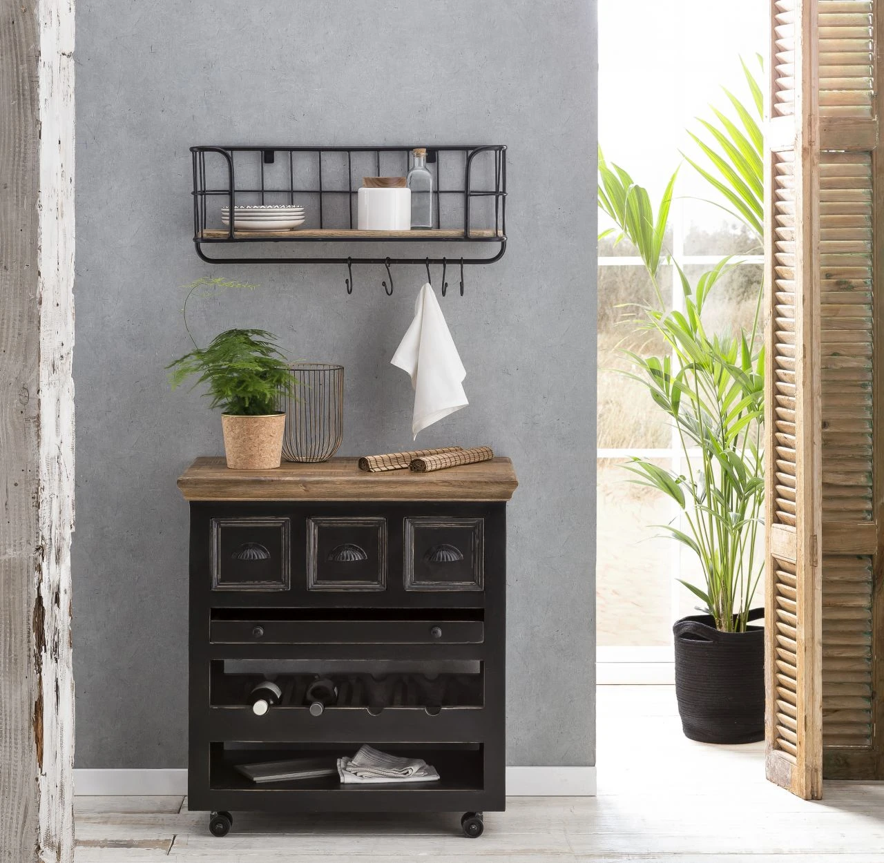 Das praktische Wandregal im angesagten Used-Look verwandelt jede unansehnliche und tote Ecke schnell in eine coole Szenerie, die an ein Bistro oder eine Küche in einem alten Landhaus erinnert. Gerade in Kombination mit den heute oft so kühlen glatten Flächen lockert das auf und setzt gelungene Kontrapunkte.