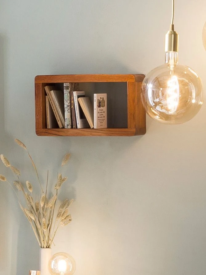Geben Sie Ihrer Dekoration einen neuen Platz. Mit diesem Wandregal präsentieren Sie Ihre Lieblingsstücke stilvoll und verleihen Ihren Wänden eine ganz besondere Note. Der Rahmen besteht aus Mango-Holz. Dies sieht nicht nur edel aus, es ist auch sehr robust und stabil. Dank der offenen Aufteilung und einer Breite von 34 cm es für fast alle Räume geeignet. So können Sie es z.B. auch in Ihrer Küche anbringen und die alltäglichen Gewürze darin verstauen. Sie sind schnell griffbereit und belagern nicht Ihre Schränke.